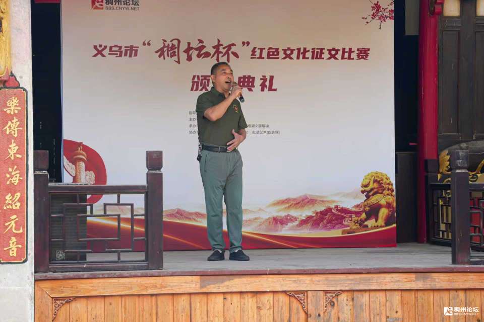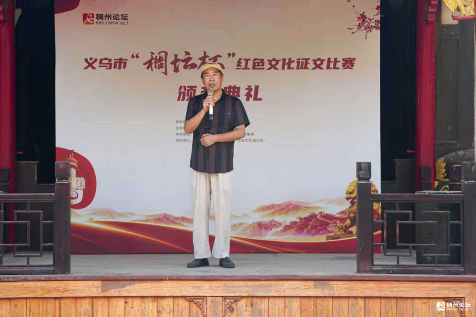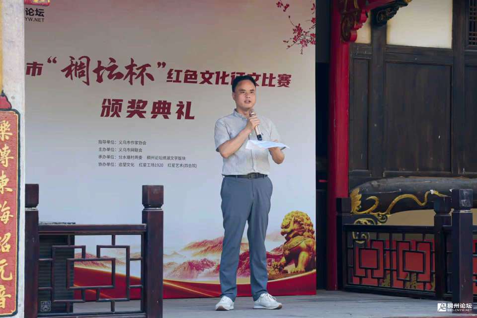 主持人乙:至此,本次征文比赛的各个奖项已全部颁发完毕。在这个过程中,我们看到了众多优秀作品,感受到了大家对红色文化的热爱与传承。接下来,有请义乌佛堂作家协会主席王春平先生为本次活动作总结发言,大家掌声欢迎!