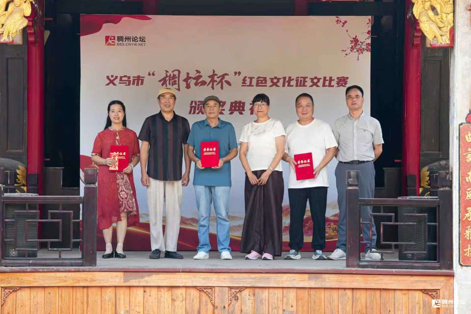 主持人甲:金秋送爽,阳光和煦,我们齐聚陈望道先生故里分水塘村,值此中国人民抗日战争暨世界反法西斯战争胜利八十周年之际,举办“稠坛杯”红色文化征文颁奖典礼,共忆峥嵘岁月,缅怀革命先烈,传承不朽红色精神。