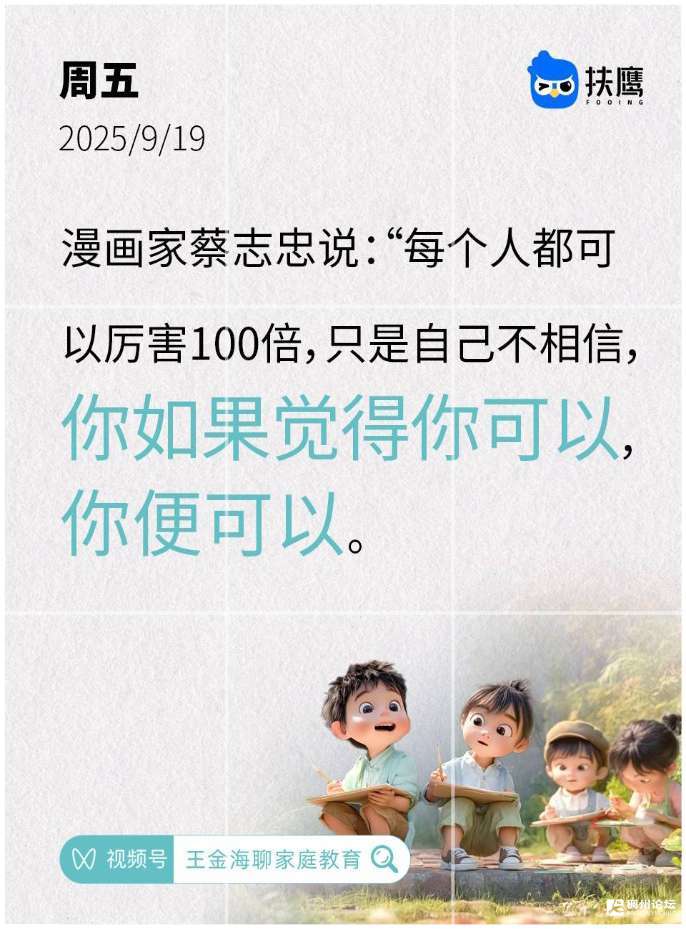 漫画家蔡志忠说:“每个人都可以厉害100倍,只是自己不相信。你如果觉得你可以,你便可以。”