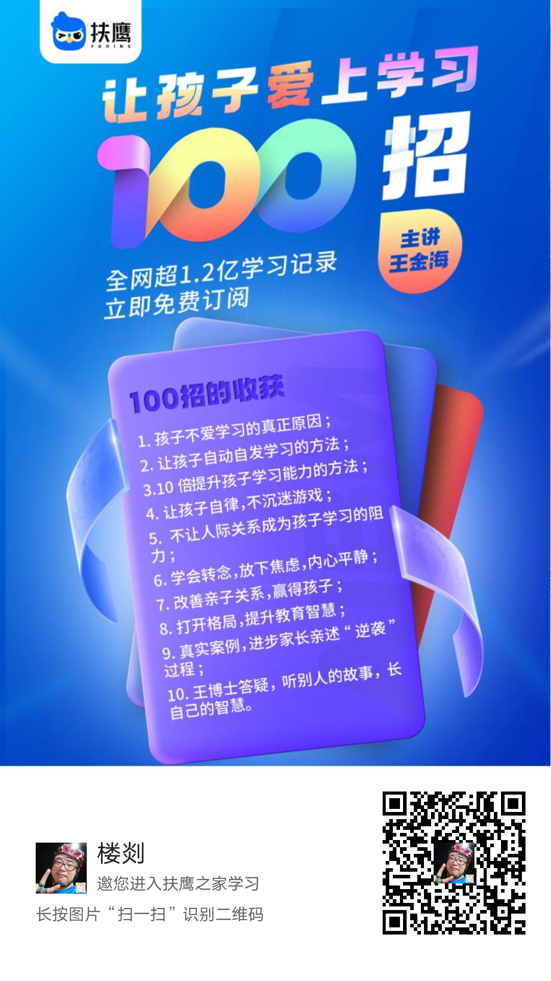 孩子很小的时候,我们是主角,他们是配角。孩子不断长大,我们逐渐退居配角,孩子逐渐升为主角。如果我们一直抱着主角的位置不放和孩子抢戏,场面最后一定是很不堪的。有智慧的父母,会鼓励孩子去尝试,犯错也是必须经历的学习。我们从孩子小的时候嘴上的奶瓶,到孩子大了以后变为他们身后不断擂响的冲锋陷阵的′战鼓。从奶瓶变战鼓,从裁判到顾问,这就是家庭教育。学习家庭教育,可以帮助我们教育出德智体全面发展的孩子。