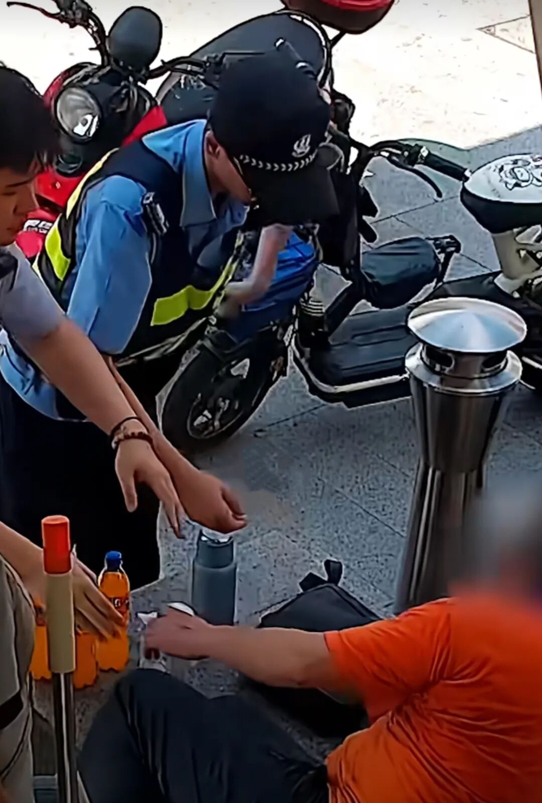 怀疑老人是因高温中暑 沈中杰立即拿来 藿香正气水给老人服用 并将其移至通风处休息 期间 沈中杰等人多次提出 送陈大爷前往医院检查 或到警务室稍作休息 但都被他婉拒