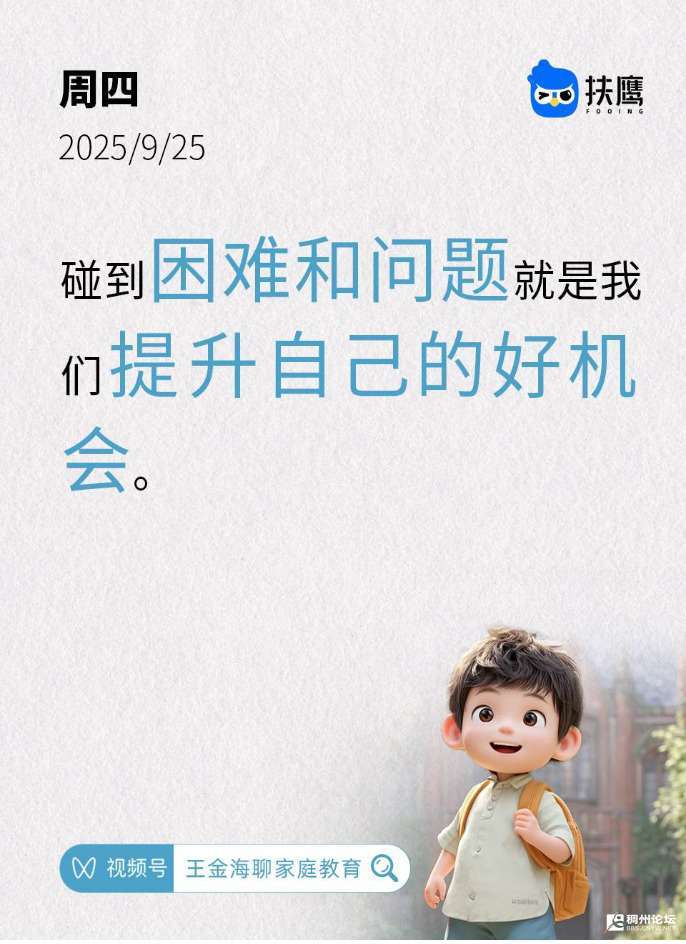 今日扶鹰家庭教育日签:“碰到困难和问题就是我们提升自己的好机会。”