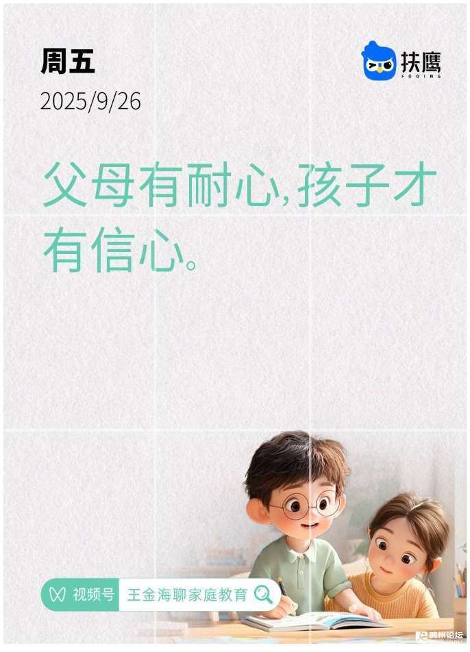 今日家庭教育日签: 父母有耐心,孩子才有信心。