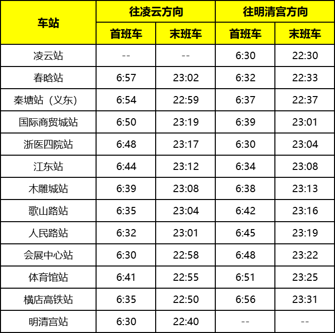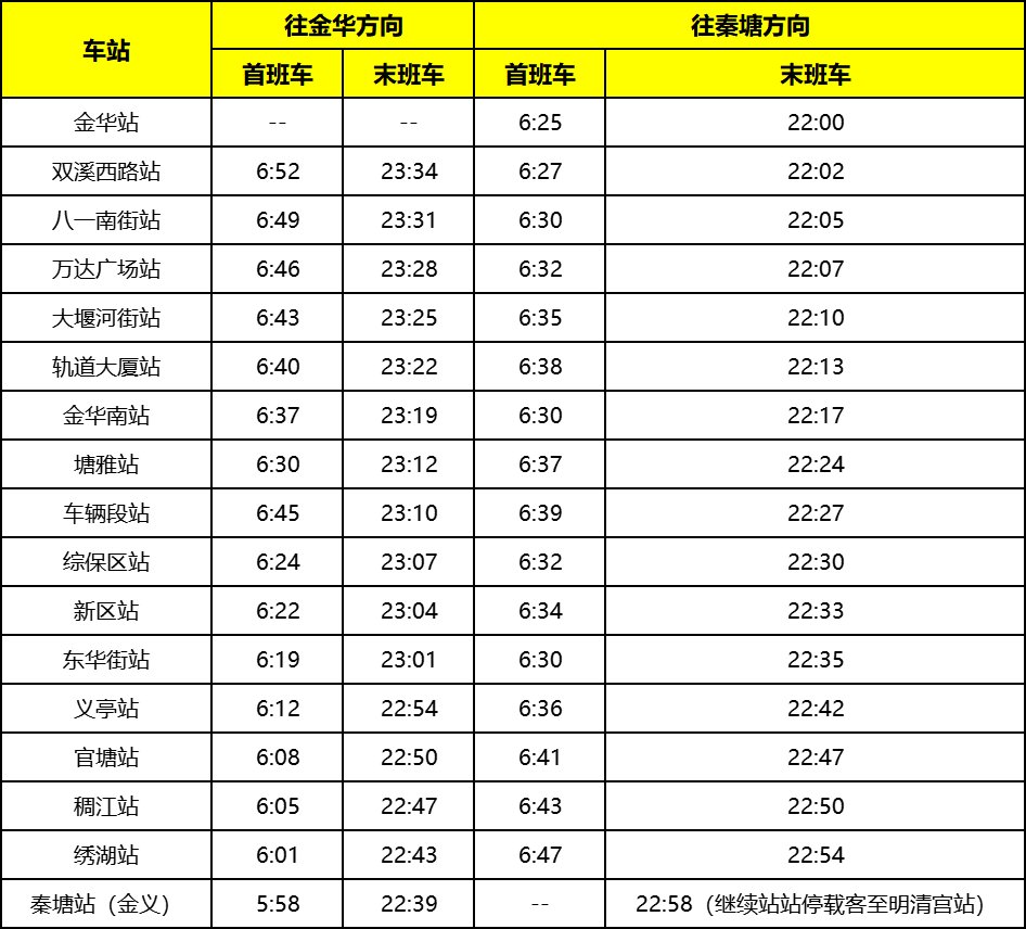 金义线各车站首末班车时刻表