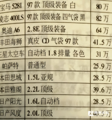 翻到了一本90年代汽车的价格,那个时候能买得起一辆车的人很少,一定也是有钱人啊。