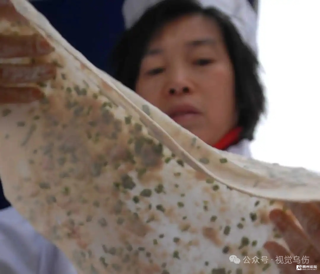 事实上,“东河肉饼”确实有资格“遍地开花”,因为肉饼的鲜美确实迷倒了无数的市民。它虽薄如宣纸,却由两层麦饼粘连,而且,中间夹着肥肉与葱或韭菜,由肉饼师傅旋拉延展而成。用猪油煎烤的肉饼,色香味俱全,其诱惑力之大,实非其他食品可比。