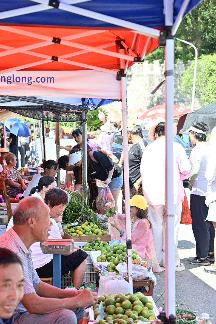 舞台旁的农产品市集汇聚赤岸本地特色产品,吸引游客品尝选购,有效推广了乡村好物。