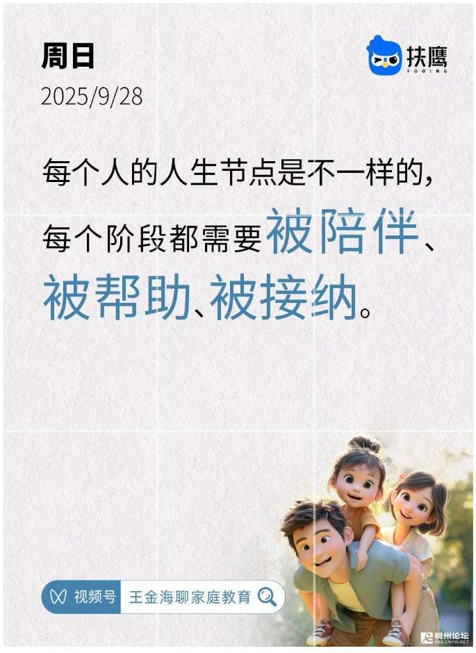 今日家庭教育日签:“每个人的人生节点并不一样的,每个阶段都需要被陪伴、被帮助、被接纳。”