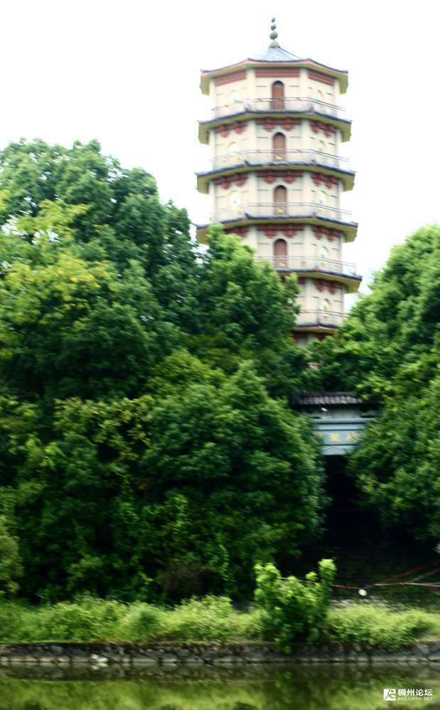 在小长城起点处,有一尊高大的戚继光戎装塑像,看上去特别威武雄壮。原来这长城颇有来头,并不是乔亭人一时的心血来潮。戚将军带领义乌兵抗倭,乔亭这一带是主要兵源地,这长城象征着义乌兵奋勇抗倭的那段辉煌历史。戚帅归来塑像背后,就是乔亭村的小西湖,虽然规模袖珍了些,那湖光山色美不胜收。徜徉湖边,有一座拱形“大乔”,连接着湖中的小岛,半圆的桥洞和水中的倒影无缝对接,妥妥的形成一个中秋圆月。在一片墨绿的树冠丛里,七层高的金刚塔显得犹抱琵琶半遮面,若隐若现,风姿绰约。