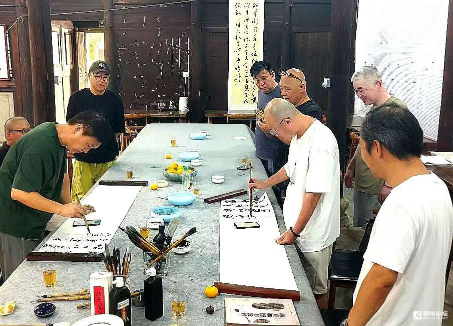 “书法不只是技艺,更是文脉传承。”朱胜斌将毛笔浸入清泉碗中,看墨色如云散开,“ 在古祠办雅集,笔墨里能听见历史回响。中秋团圆、国庆欢庆,我们以笔墨为媒介,让千年祠堂见证新时代的文化自信。”