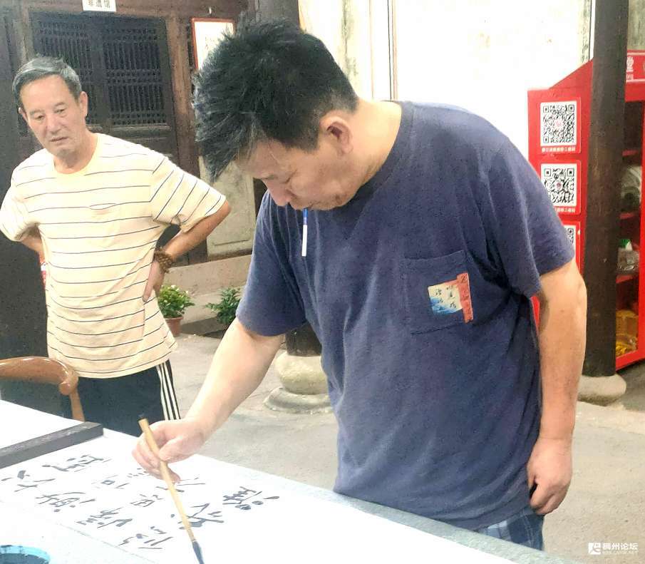 师从朱成宪、李章庸等书法家,活动发起人王凯站在人群中,时而为前辈递上镇纸,时而与市书协副主席陈永君、王文胜交流笔法,他指尖沾着墨渍,眼中却闪着光:“从八十年代跟着朱成宪先生学握笔,到今天能在古祠里和各位老师切磋,这既是传承,也是给双节最好的礼物。”