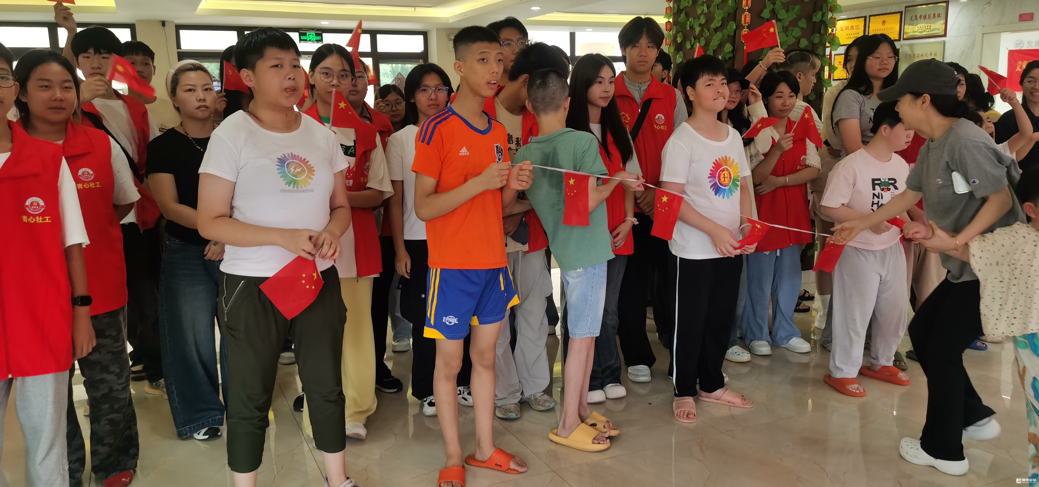 活动中,孩子们在志愿者陪伴下制作五星红旗、观看升旗仪式,聆听国旗故事,爱国情怀在幼小心灵中生根发芽。在生活照料区,“影子妈妈”们细心为孩子们洗头、理发、洗澡,通过贴心服务让孩子们焕然一新迎国庆。
