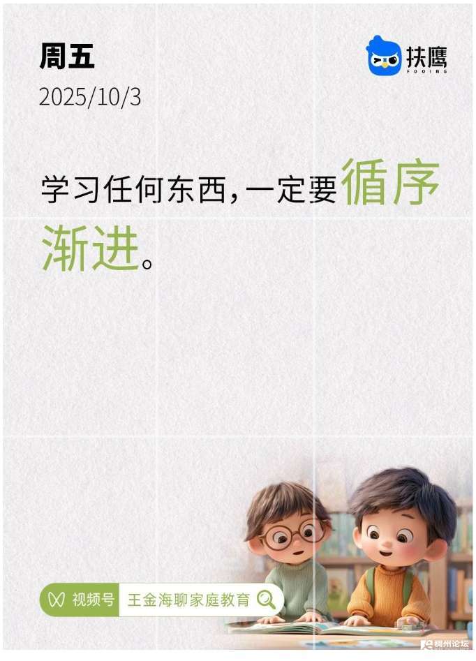 10月3日家庭教育日签:“学习任何东西,一定要循序渐进。”
