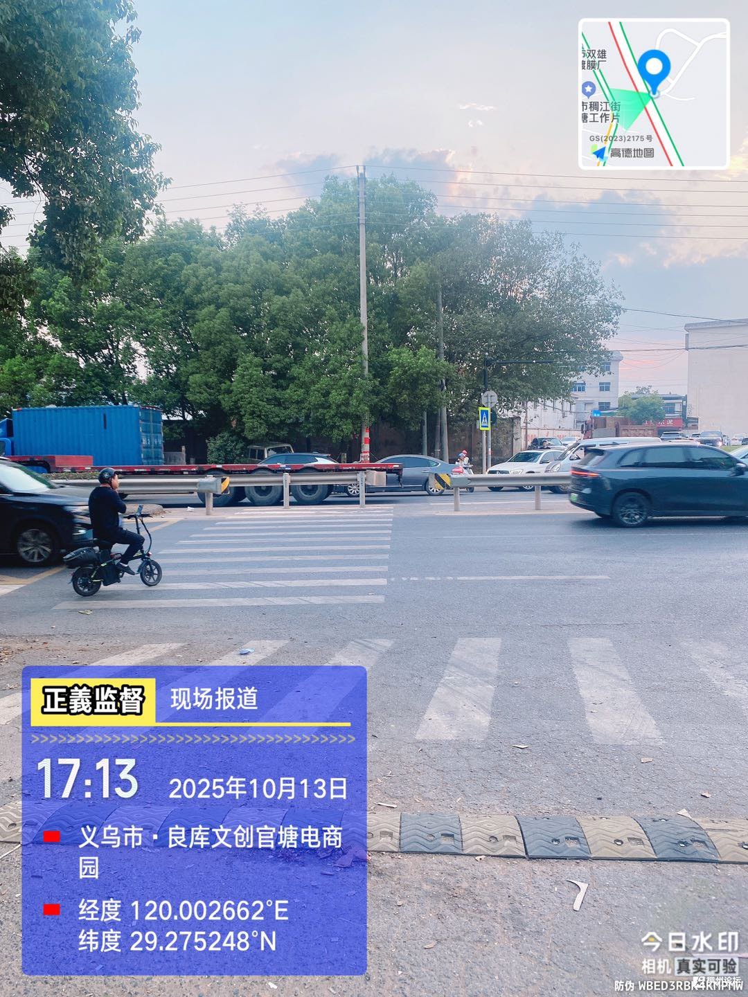 在义乌市香溪路下沿塘305号处的过街人行横道存在安全隐患问题,设计的Z型二次过街人横道行道,存在着行人和电瓶车可一次性过街,又处于路口及下坡车辆车速快,行人过街非常危险(无等待安全岛),电瓶车直穿而过(鬼探头)机动车无法及时啥车。综上问题接到网友反馈后,传到浙里办要求整改,义乌市稠江街道与2025年8月27日15时答复:已备查,网友今天2025年10月13日再次反馈称还是一样! 正義再次到达现场:发现该处人行横道依旧如此( 不是Z行 二次过街),没有整改的痕迹,过马路依旧危险! 义乌市稠江街道答复意见