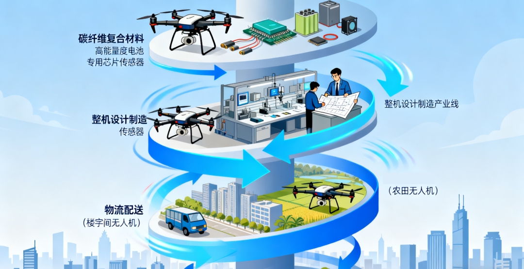 上游(原材料与核心部件):依托本地乃至长三角的供应链优势,可以快速布局碳纤维复合材料(机身)、高能量密度电池、专用芯片与传感器等关键环节。