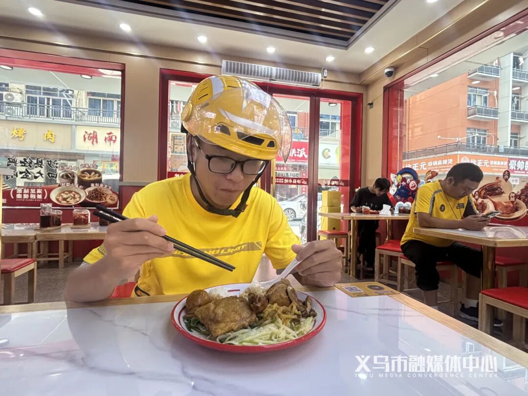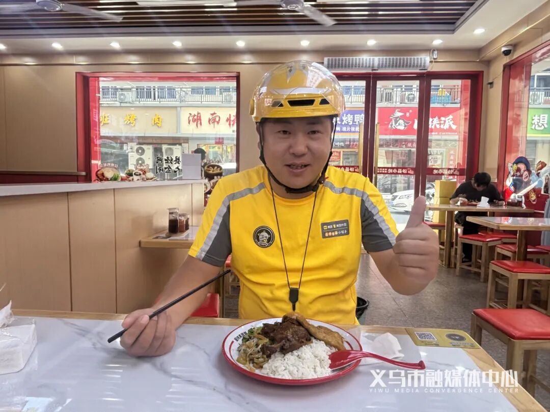 10月15日,在稠城街道义驾山社区,外卖骑手阎晓峰熟门熟路地走进一家沙县小吃店:“来一份‘骑士套餐’!”两分钟后,一份包含鸡腿、蔬菜、卤蛋、紫菜汤和米饭的营养套餐被端到他面前,价格只需13元。