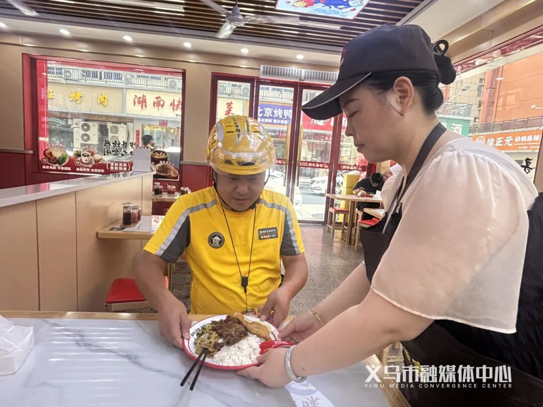 外卖骑手阎晓峰就餐的这家沙县小吃,便是首个加入其中的爱心商家。“每天看着他们风里来雨里去,到饭点连口热饭都顾不上吃,特别心疼。”老板娘邓金娣对骑手的辛苦感同身受,接到社区合作邀约时,她立刻答应,主动让利,“现在每天都有20多位骑手来吃饭,我们备足食材,绝不让他们因为等餐误单。”
