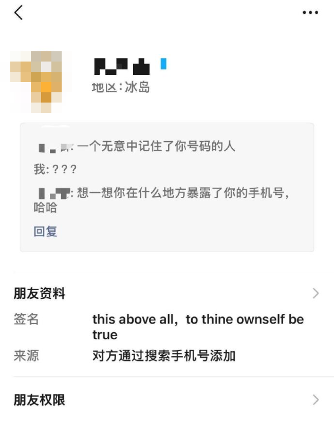 手机号加微信,救命,和朋友一起去买零食,之后也没怎么看手机,一直在溜达,回家之后发现有个人加我,出现了以上对话,我没在回复他当时店里排队很多人我没注意身边都有谁,以后都不想再报手机号用会员了,不能用会员码吗?恐如怖