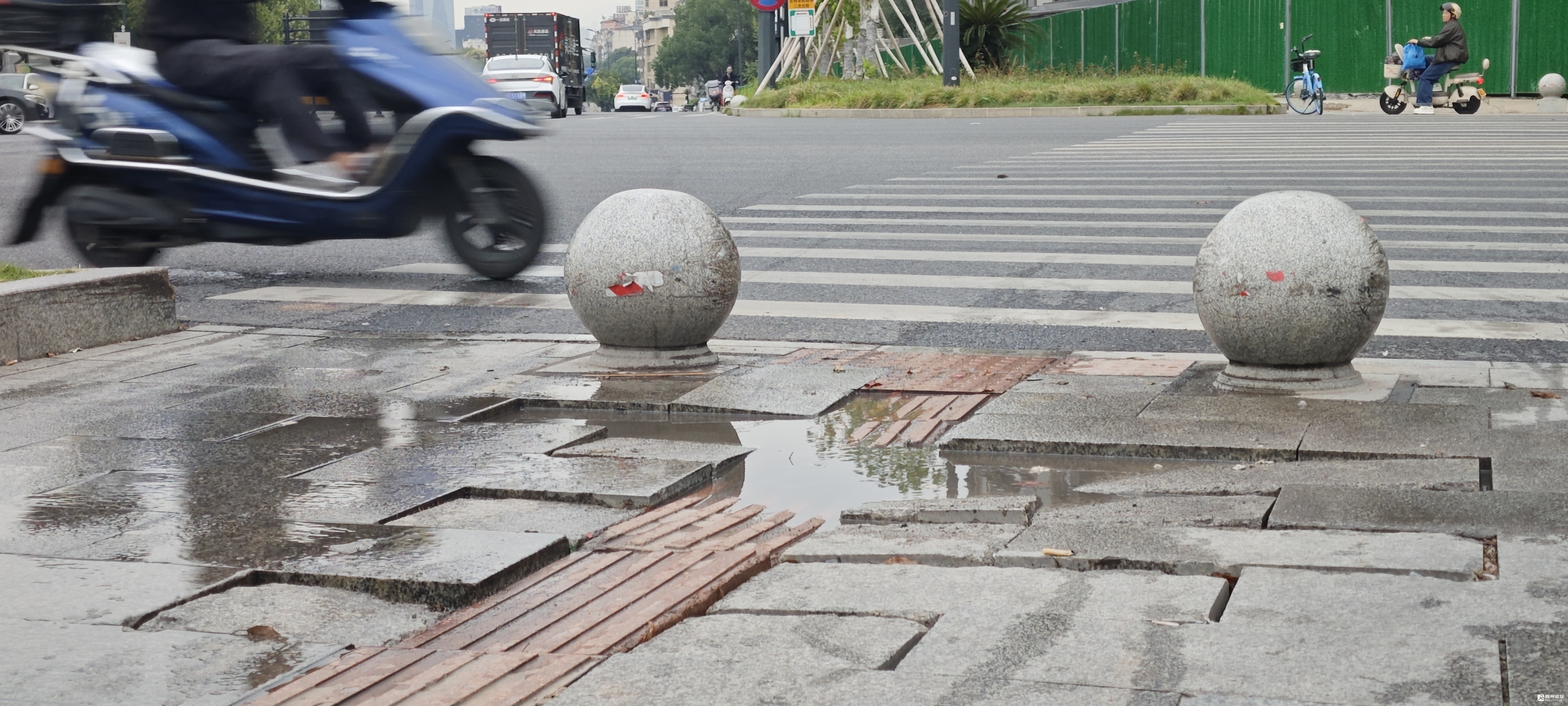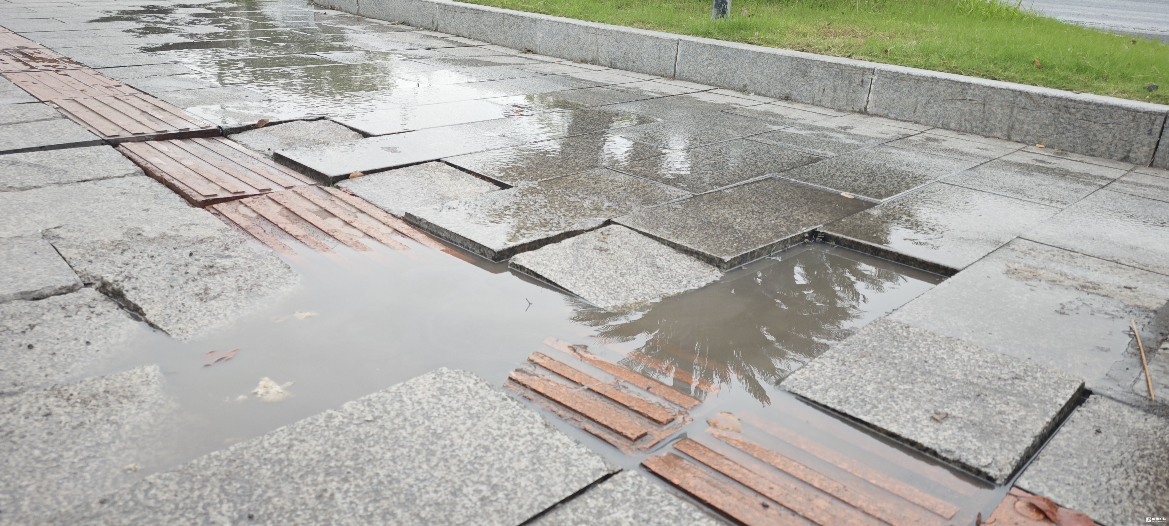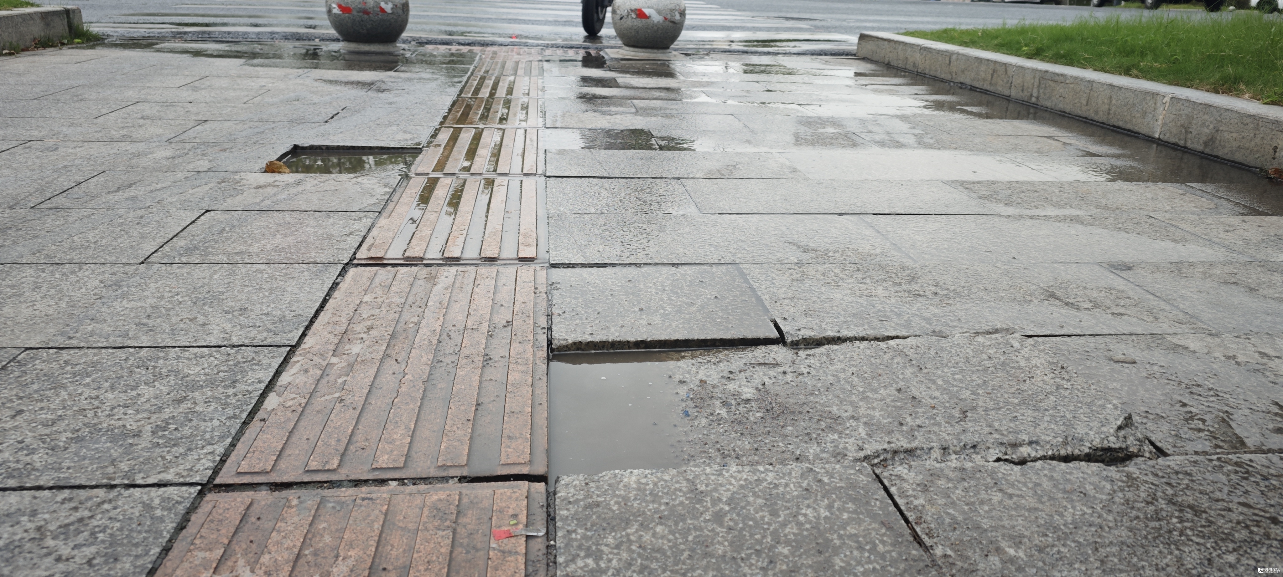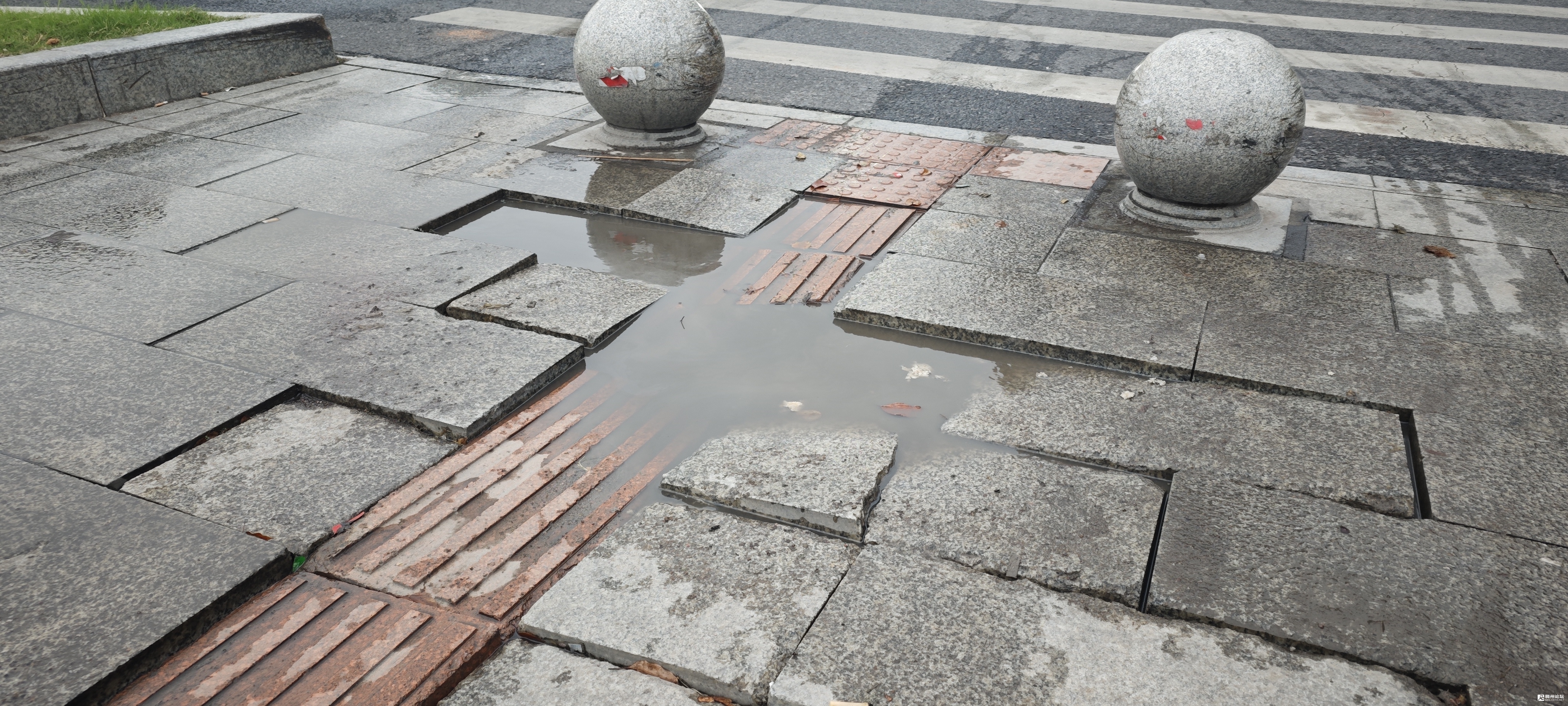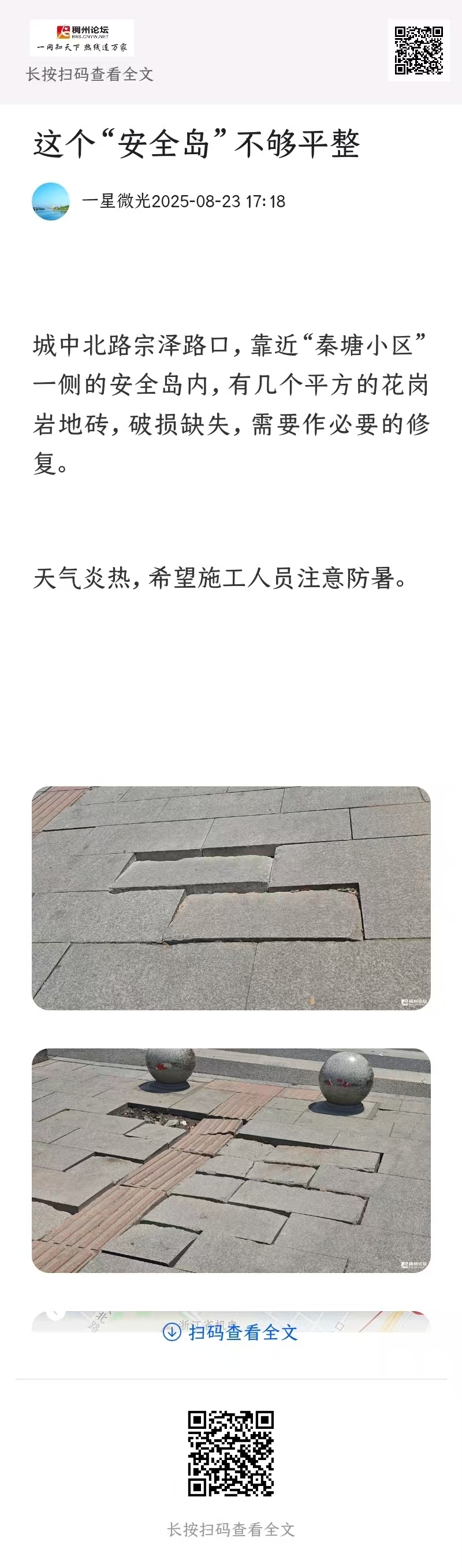 8月23日,发帖反映城中北路宗泽路口,安全岛花岗岩地砖破损的问题,至今没有丝毫改变,还是老样子。