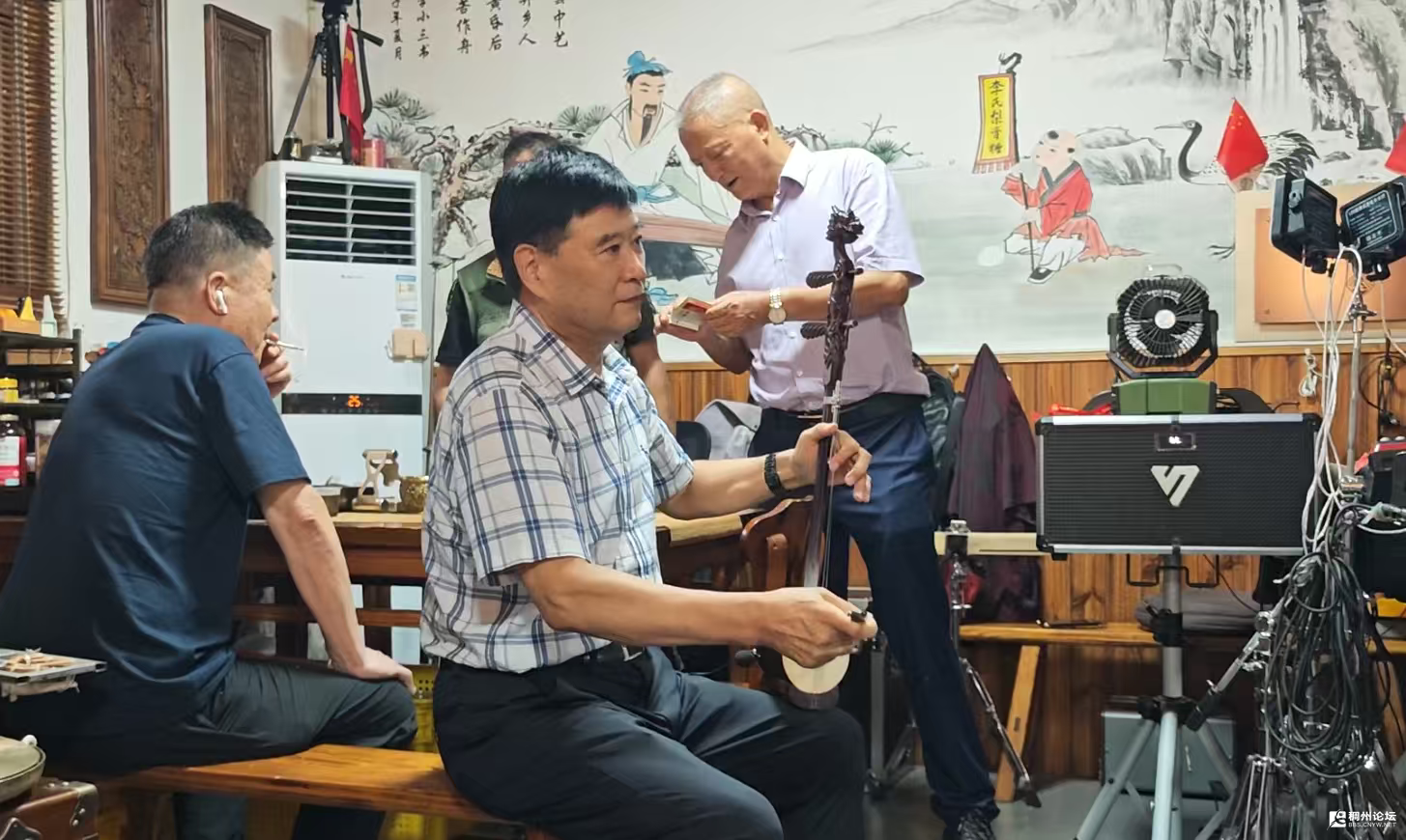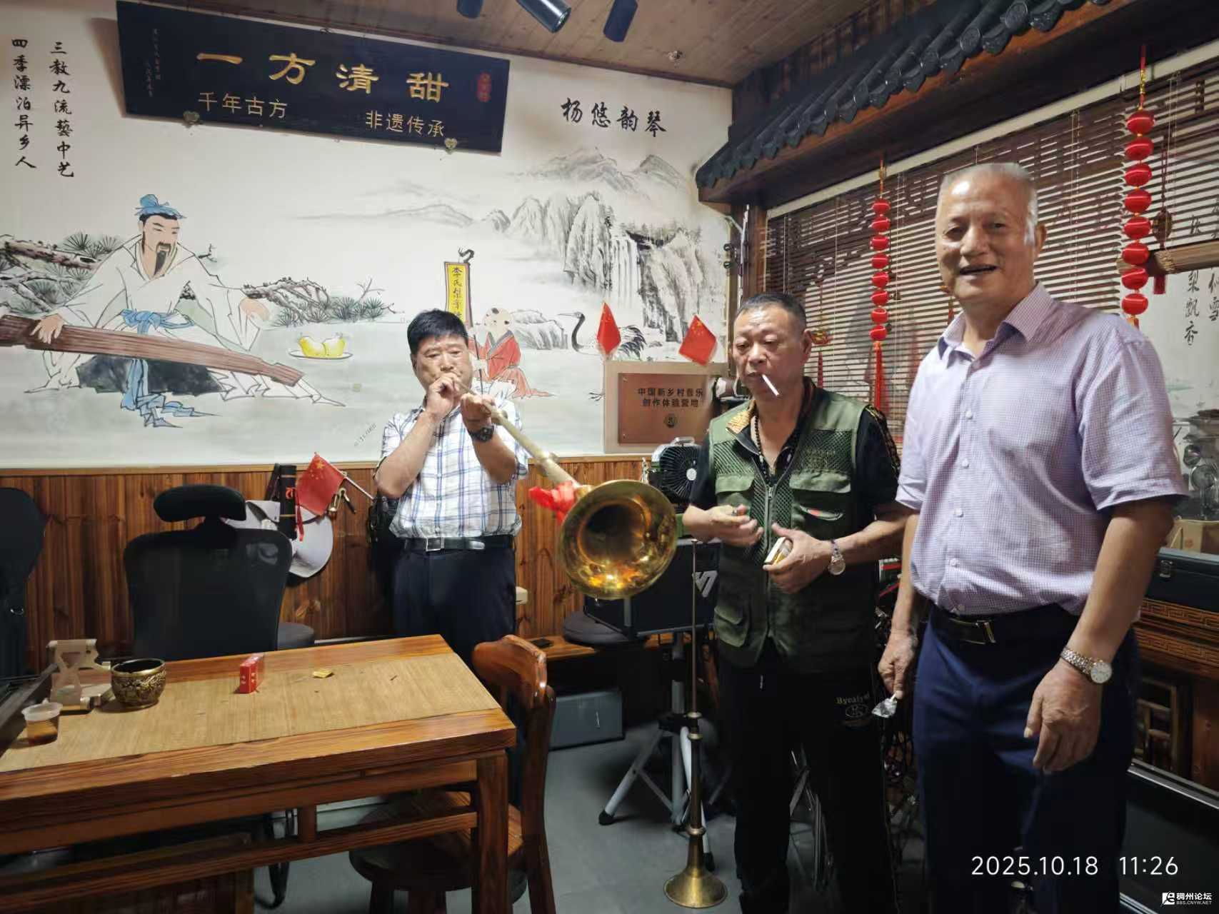 参访途中,省方氏总会会长方浩福兴致盎然,现场即兴演奏了传统乐器长号(先锋)与二胡。悠扬的乐声不仅展现了宗亲成员的文化素养,更让现场氛围增添了几分传统韵味,赢得同行成员的阵阵掌声。待全体成员到齐后,大家在李祖村党群服务中心门口整齐列队,拍摄集体合影,定格此次相聚的珍贵瞬间。