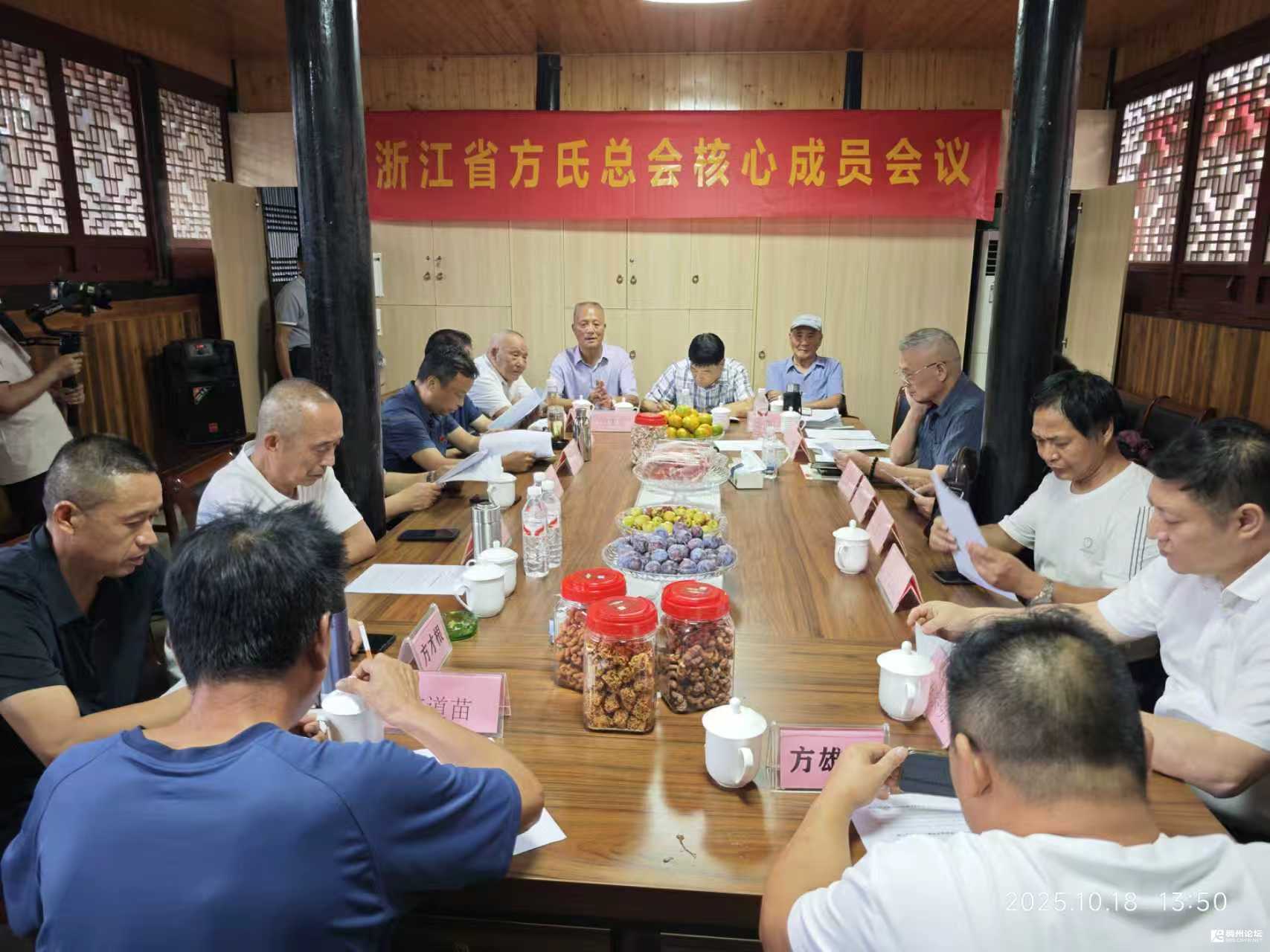2025年10月18日,浙江省方氏宗亲联谊总会核心成员会议在方大宗祠盛大举行。省方氏总会会长(方浩福)、总会执行会长(方以象)、省方氏总会常务副会长(方建华)、秘书长(方术生)、义乌川塘方方氏会长(方朱福)、方伯南等15名核心成员齐聚一堂,共商宗亲联谊发展事宜,同步开展文化参访与红色学习活动。