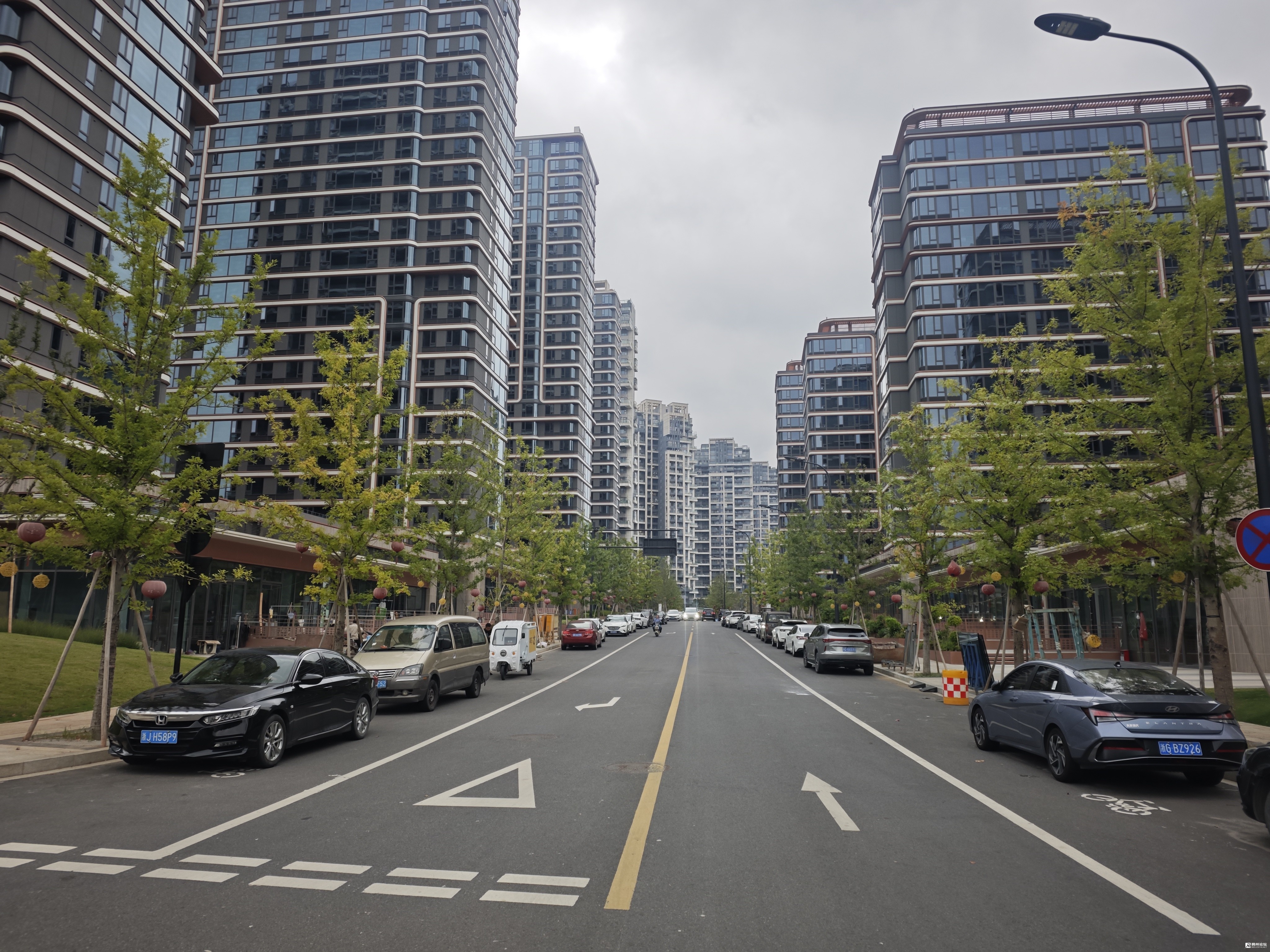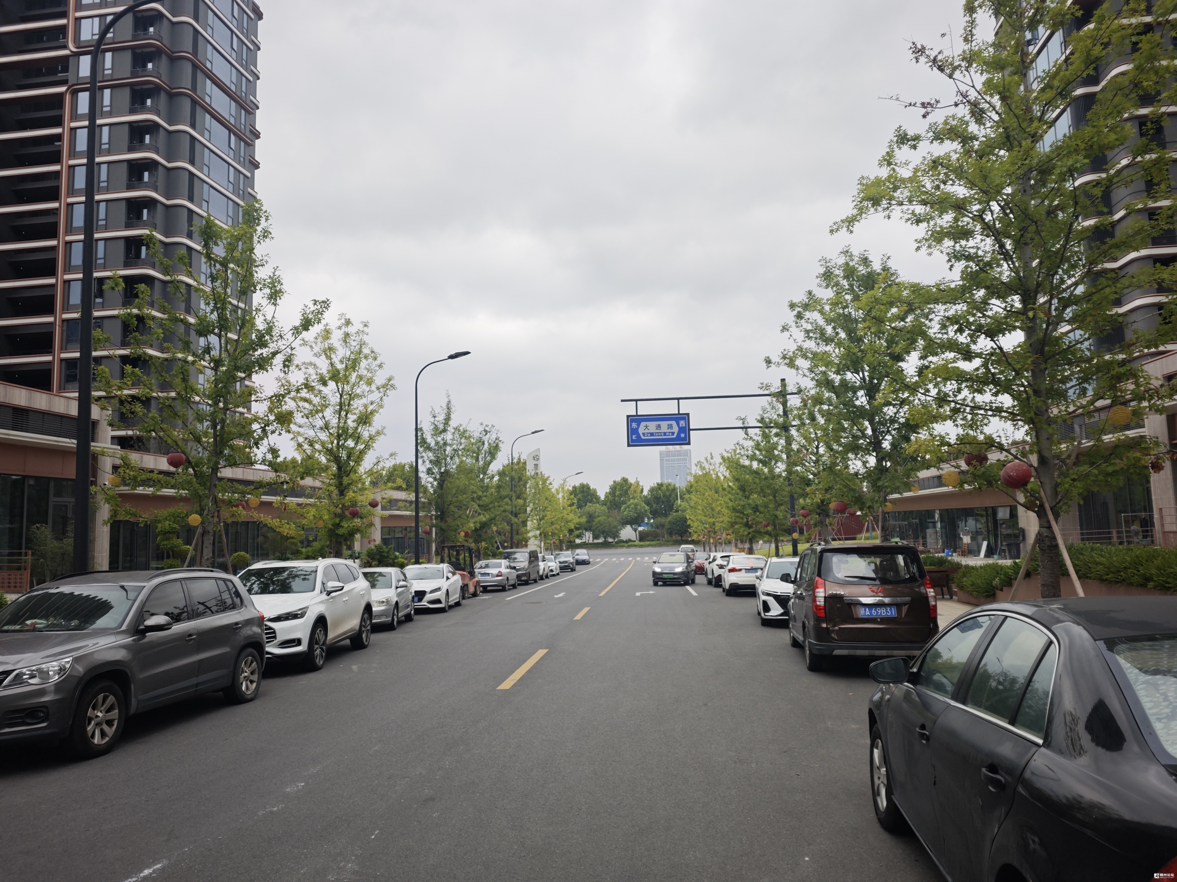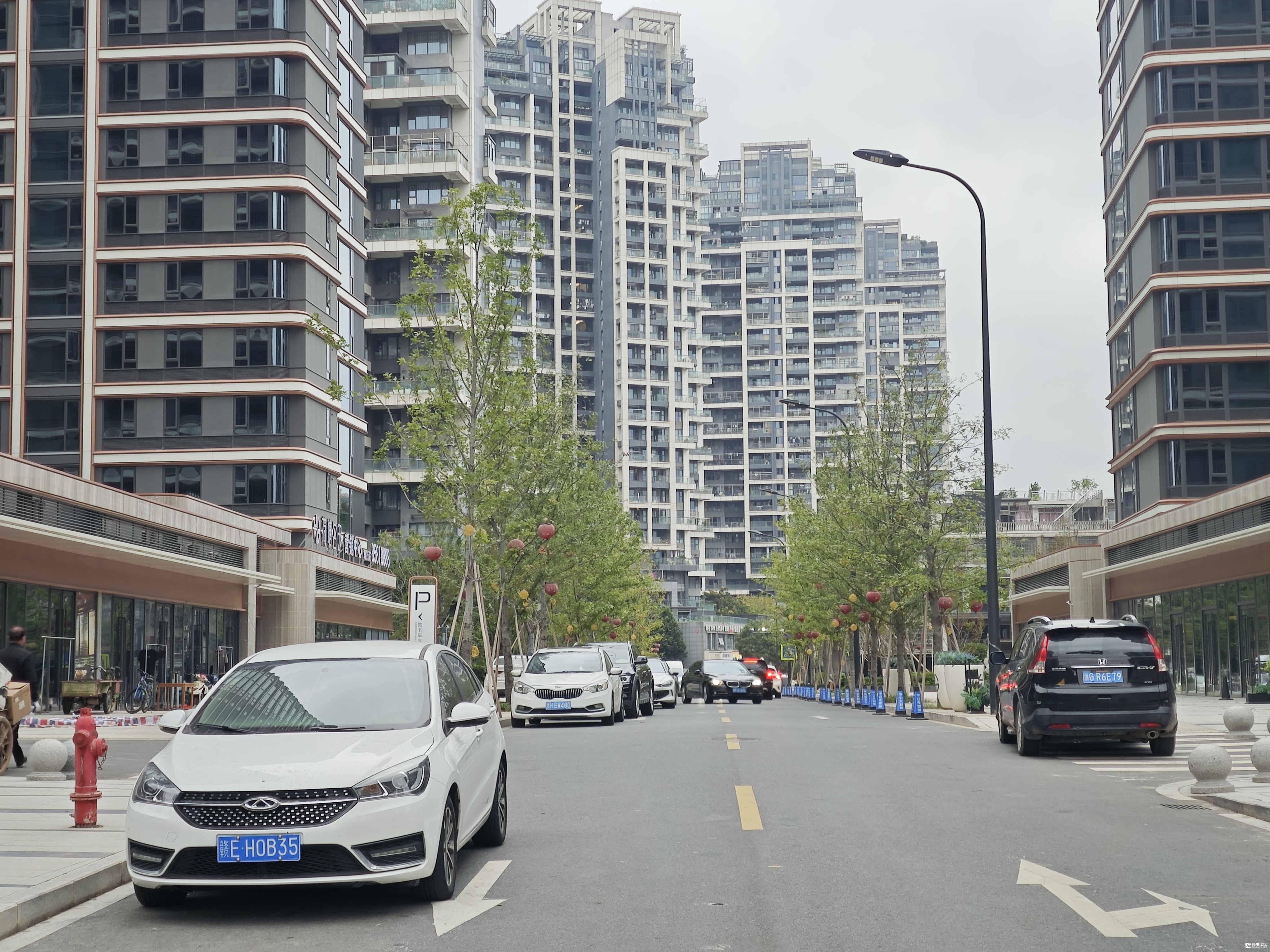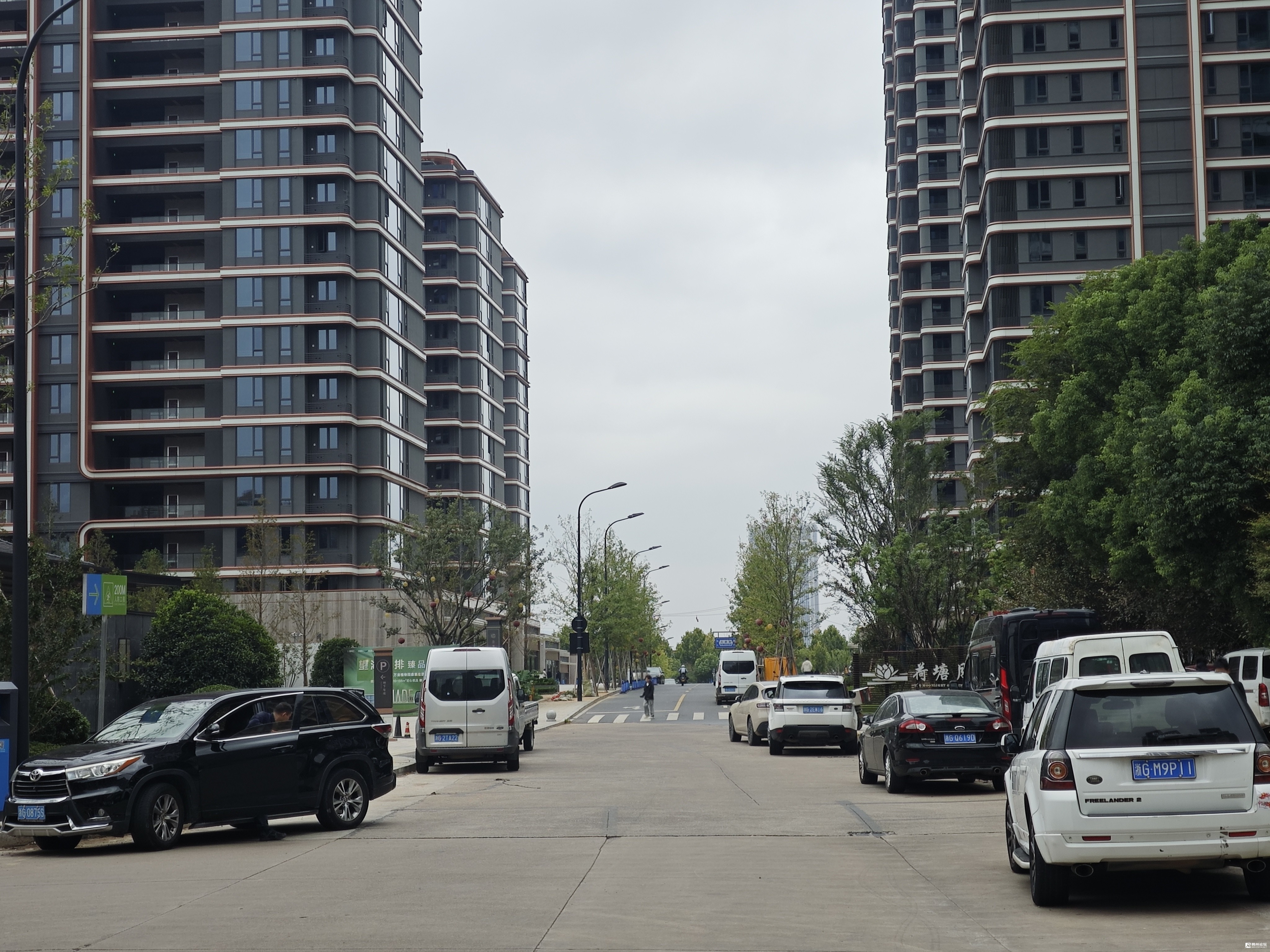 今天早上八时许,应该不算出行高峰,未见拥堵观象。但本来不宽的道路,两旁停放着的多辆汽车,却让人觉得非常别扭。