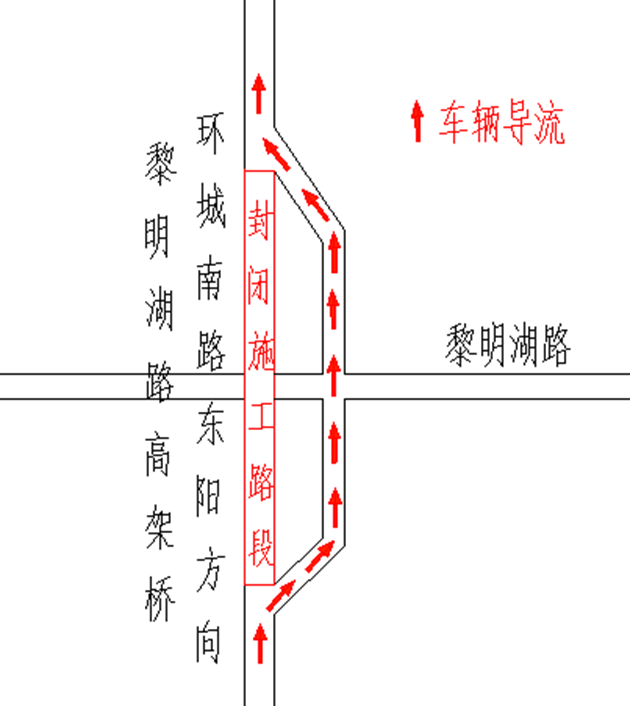 因环城南路黎明湖路高架桥(南景路—黎明湖路)往东阳方向路面破损维修施工需要,进行夜间封闭施工,社会车辆往地面道路通行,白天开放交通。具体安排为: