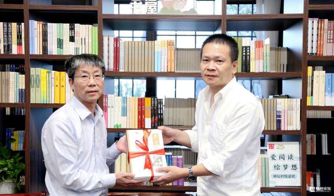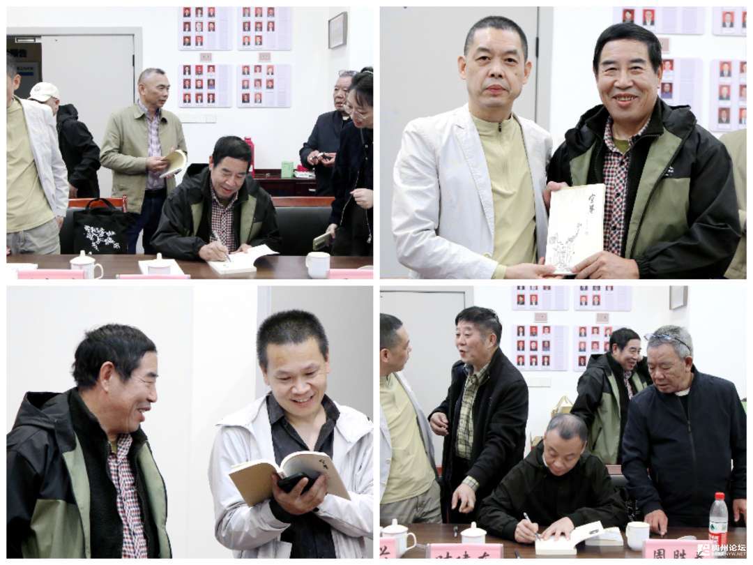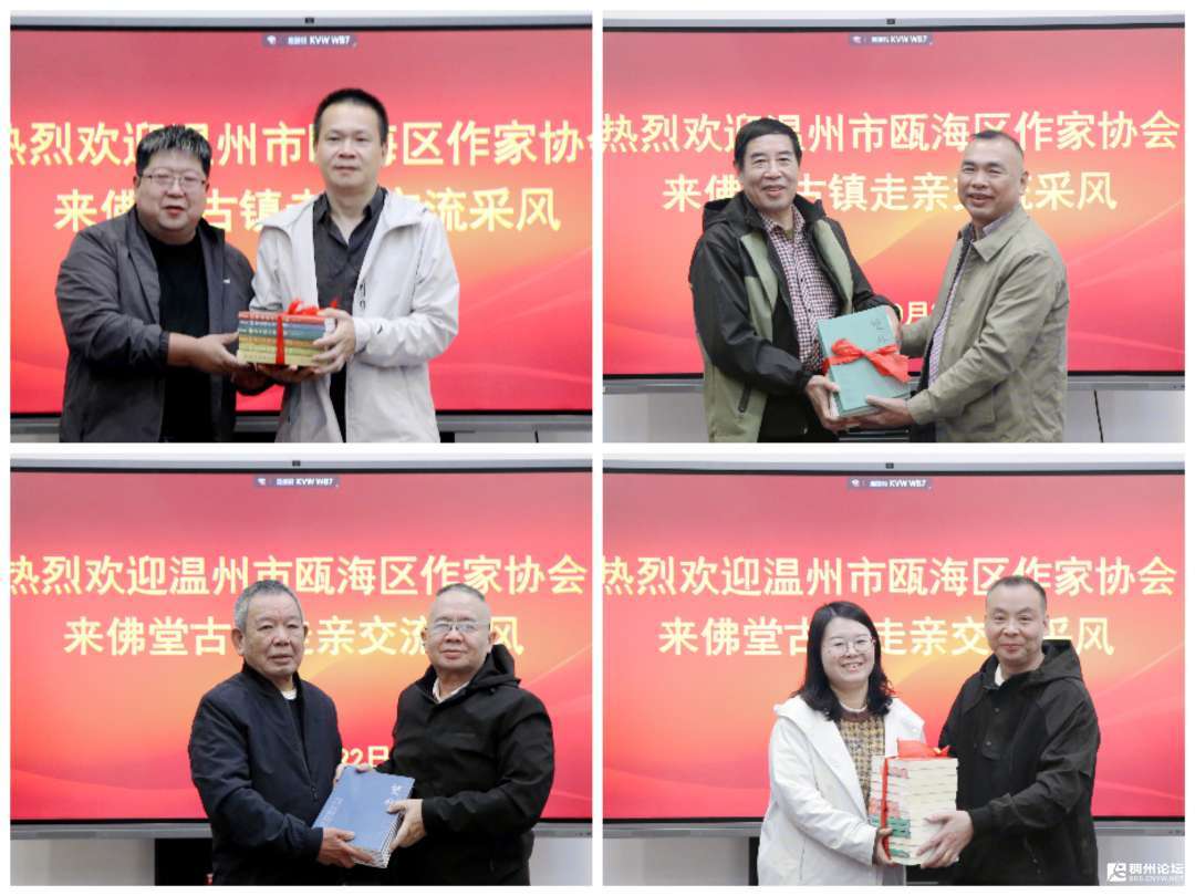 下午两点半,佛堂镇政府会议室里茶香氤氲。两地作家隔桌相望,桌上没有繁琐的议程文件,取而代之的,是各自精心准备的文学书刊与一颗颗坦诚交流的心。