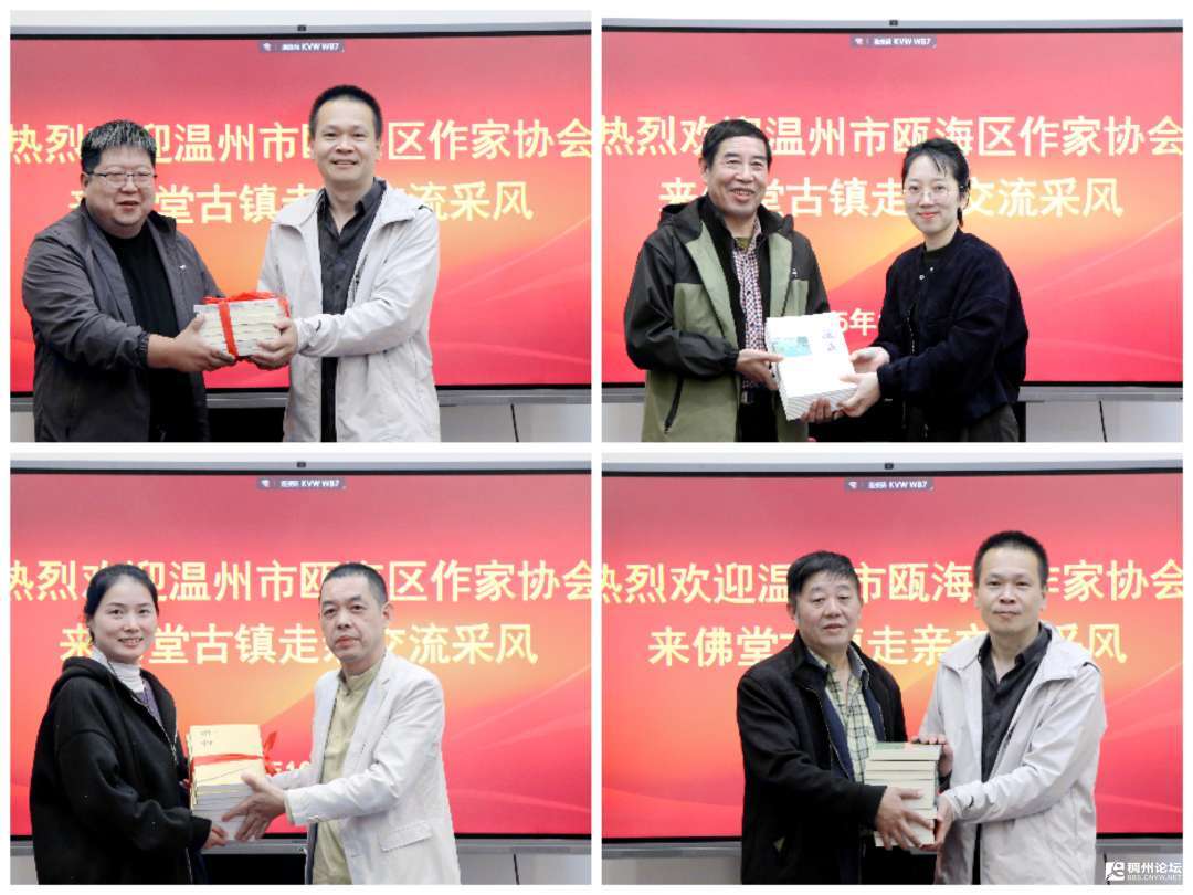 “老街寻古韵,三桥映彩光。”王春平即兴赋诗一首《迎瓯海作协佛堂采风》:“瓯江雅客来,六彦赴佛堂。赠卷盈书香,倾谈满座芳。老街寻古韵,三桥映彩光。夜咏风光好,情深意未央。”诗句清雅,情意绵长,道出了今日之会的文心共鸣。