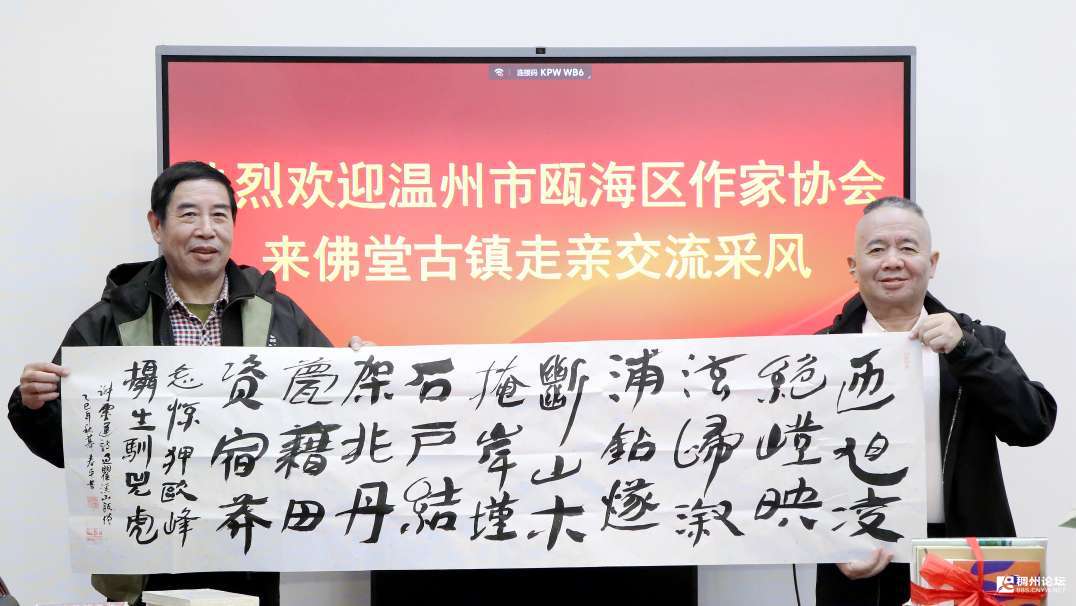 “瓯江雅客来,六彦赴佛堂。”是日午后,六位来自瓯江之畔的文人雅士踏着秋光而来,带着浙南山水的湿润气息——这是温州市瓯海区作家协会走亲交流采风一行,为一场跨越地域的文学之约,奔赴千年商埠佛堂。