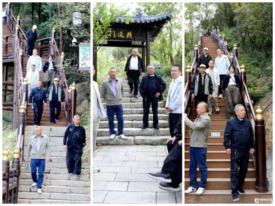 次日,瓯海区作家协会走亲交流采风一行,在佛堂作协一行人陪同下,采风的足迹延伸至佛堂镇外的云黄山。沿着健康的游步道拾级而上,秋日的山林色彩斑斓,空气清新沁人。登临山顶,极目远眺,整个佛堂古镇的轮廓尽收眼底。现代化的楼宇与成片的古民居交织,义乌江如一条玉带蜿蜒而过。这宏大的视野,让作家们对昨日走过的街巷有了更立体的认知,对这片土地的前世今生有了更深刻的感悟。