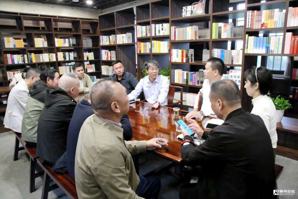 座谈会由东道主、佛堂作家协会主席王春平主持。他身兼作家与书法家之职,儒雅中透着干练,笑容谦和,言语亲切:“今日金风送爽,贵客临门,是我们佛堂文坛的一大幸事。”