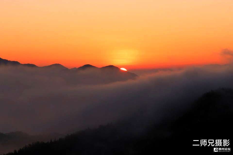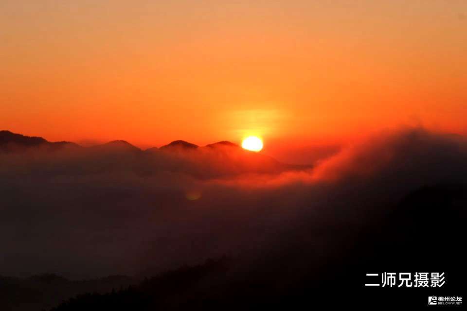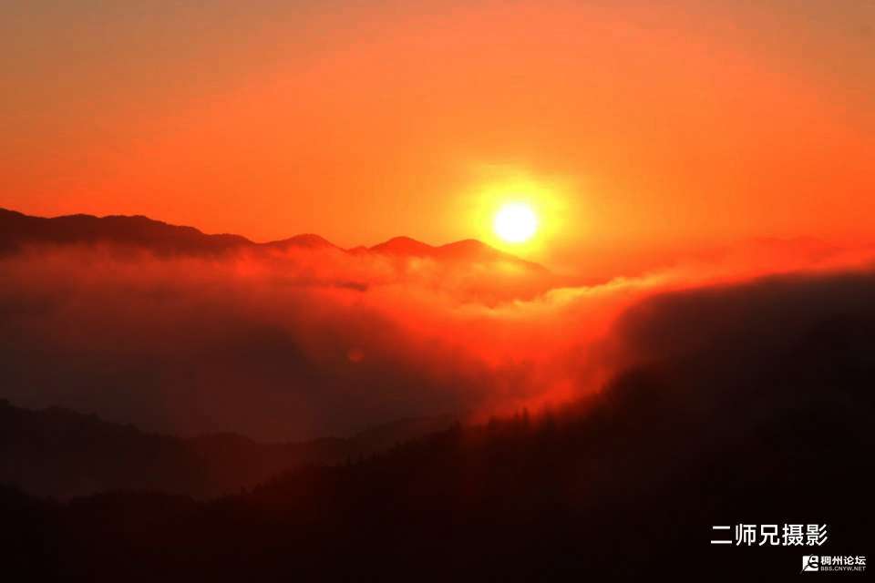云雾在无声无息中升腾,似欲吞噬一座座山峰。山峰仿佛动怒了,急红了脸。一弯红日自山峰的脸颊悄悄探头,如顽皮的红孩儿,跃上山峰的鼻梁、额头,最终攀至头顶。红彤彤的太阳终于完全爬上山巅,像一位早起的登山者,喘着气,红着脸,攀过七七四十九道弯,终于登顶。天空霞光弥漫,山腰云雾尽染,宛如仙子的白裳沾上了番茄酱。刹那间,火红的太阳、绯红的霞云、暗红的山影、粉红的云雾,统统被织女编织进一幅绚烂的日出画卷。