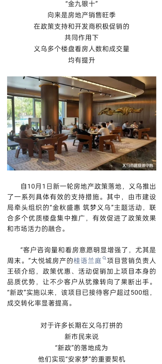 不过啦,今天也看到了官方发的消息。在义乌各项政策的支持下,市场成交上升和价格趋稳让购房者信心逐步恢复,今年后续楼市有望迎来“翘尾行情”。