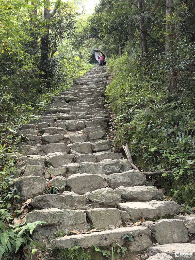 古道上去原来都是泥巴路,路窄。现在都修得很好,进行了拓宽,有的地方条石铺,有的地方用水泥。特别天龙寺上去的路,全部用旧铁道的枕木做了台阶,陡的地方做成Z字形,登山舒服了不少。原来有两百多米六十多度的陡坡,我上次是手脚并用爬上去的,稍不小心就会滑下去,甚至是滚下去。现在没一点的难度。虽然轻松,却没了以前的乐趣。