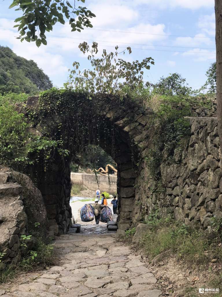 广扬边就是古隘口,这是登山入口。古隘口还是老样子,只是城墙上的爬墙虎比上次茂密了一些,有几条垂下挂在城洞口,见风摇摆,陡增了一些年代感。