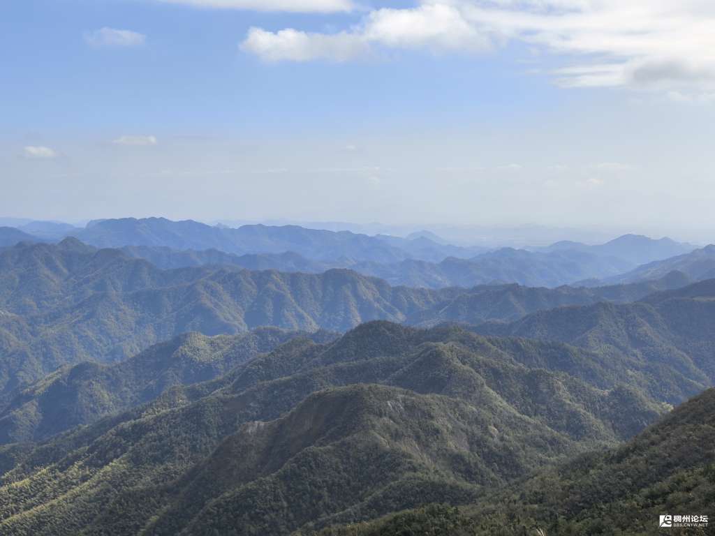 站在山顶,今天能见度高,视线良好。翠绿的山峦延绵不绝,微风拂面,心旷神怡,极目所至,尽入我之胸怀!古人说的登高望远开阔胸怀大概就是如此吧。