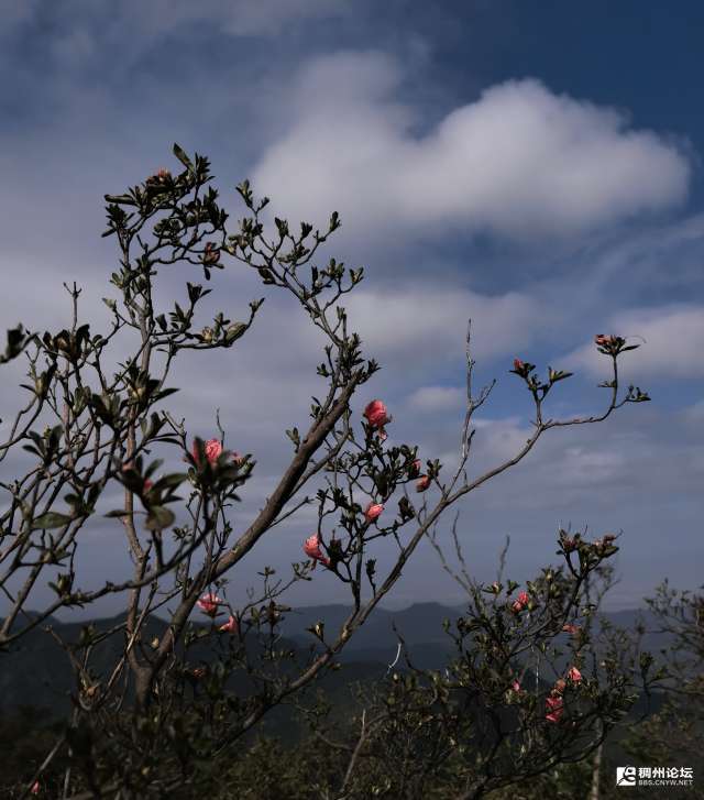 在山脊上,发现好多棵杜鹃花开了。这个季节并不是杜鹃花开花的时候,也许气侯反常打乱了植物的节奏,今年公园里的桂花开得也比往年迟。
