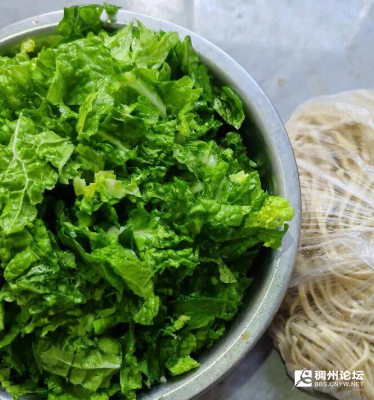 面是买现成的,只需要准备上一点配菜就好,只准了一点小白菜,洗干净后切小段备用。