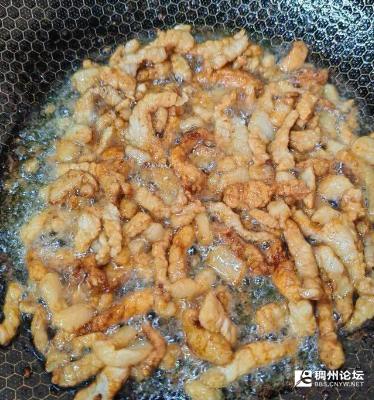 所有的食材就都准备好了,起锅烧油,油热后放腌制好的猪肉丝,炒至变色。