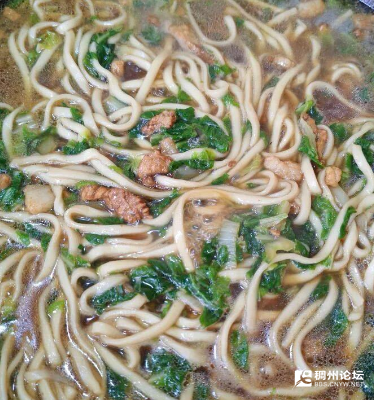 然后加适量的清水,大火煮开后再放面,最后把面煮熟就好了。有菜有面,又有汤一锅就出来了,简单省事儿又好吃。
