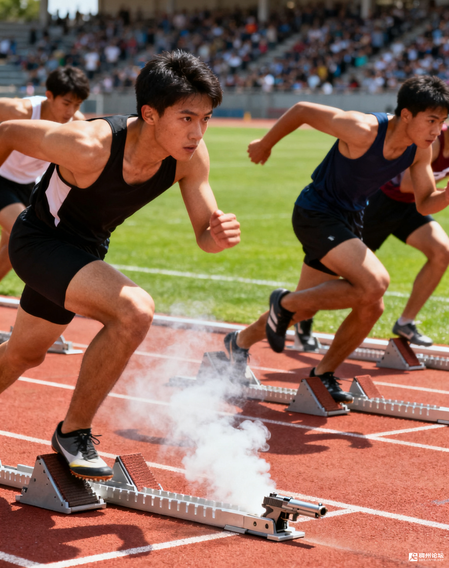 发令枪咬碎寂静的瞬间 红色跑道便生长出闪电 每一道肌肉的褶皱里 都藏着把风甩在身后的执念