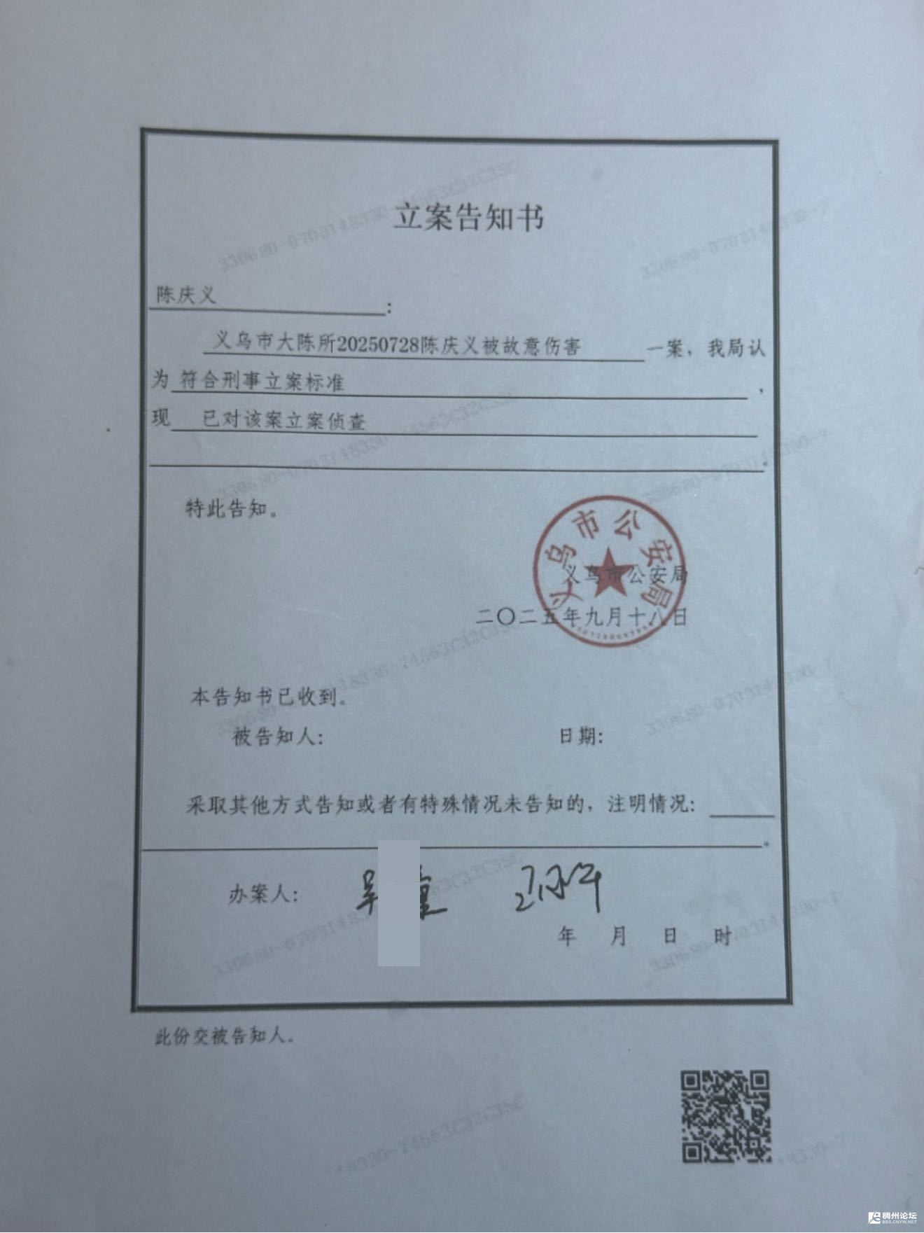 - 案件基本情况: 2025年9月18日,义乌市法医出具《司法鉴定意见书》,认定本人伤情为重伤二级,公安机关已依法刑事立案并出具《刑事立案决定书》(编号: 不详,原件由大陈派出所留存)。案件关键证据为殴打视频(该视频由犯罪嫌疑人拍摄,已被民警依法截获并存储于大陈派出所系统内),可直接证明犯罪嫌疑人实施暴力行为,与本人重伤二级伤情存在直接因果关系。