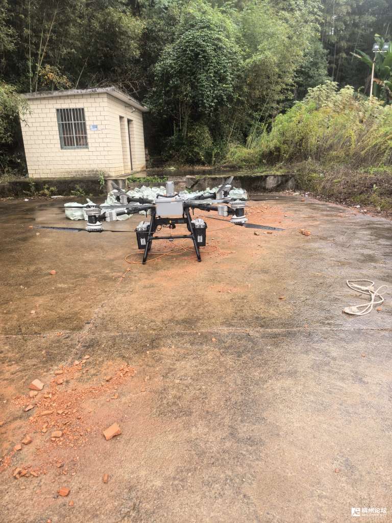 赤岸镇东朱村,仙峰水库边,无人机,威力大,上百斤的物品,轻轻一提就起来,上高度,跨度大,翻山越岭运输忙!据说,是为修高速公路。