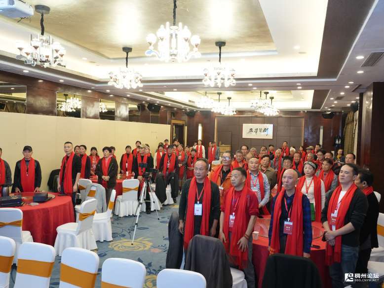 在主持人如意的主持下,全体与会人员起立,齐声高唱国歌。激昂的旋律回荡在会场,激发了大家的爱国热情,也拉开了本次会议的序幕。