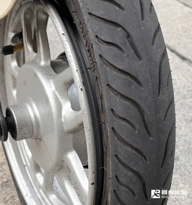 去年12月份买的电车,最近掉电挺快的,还以为电池出问题了。5点多骑车去吃饭,总感觉不对劲,一下车,胎齿分离了,还好骑得慢