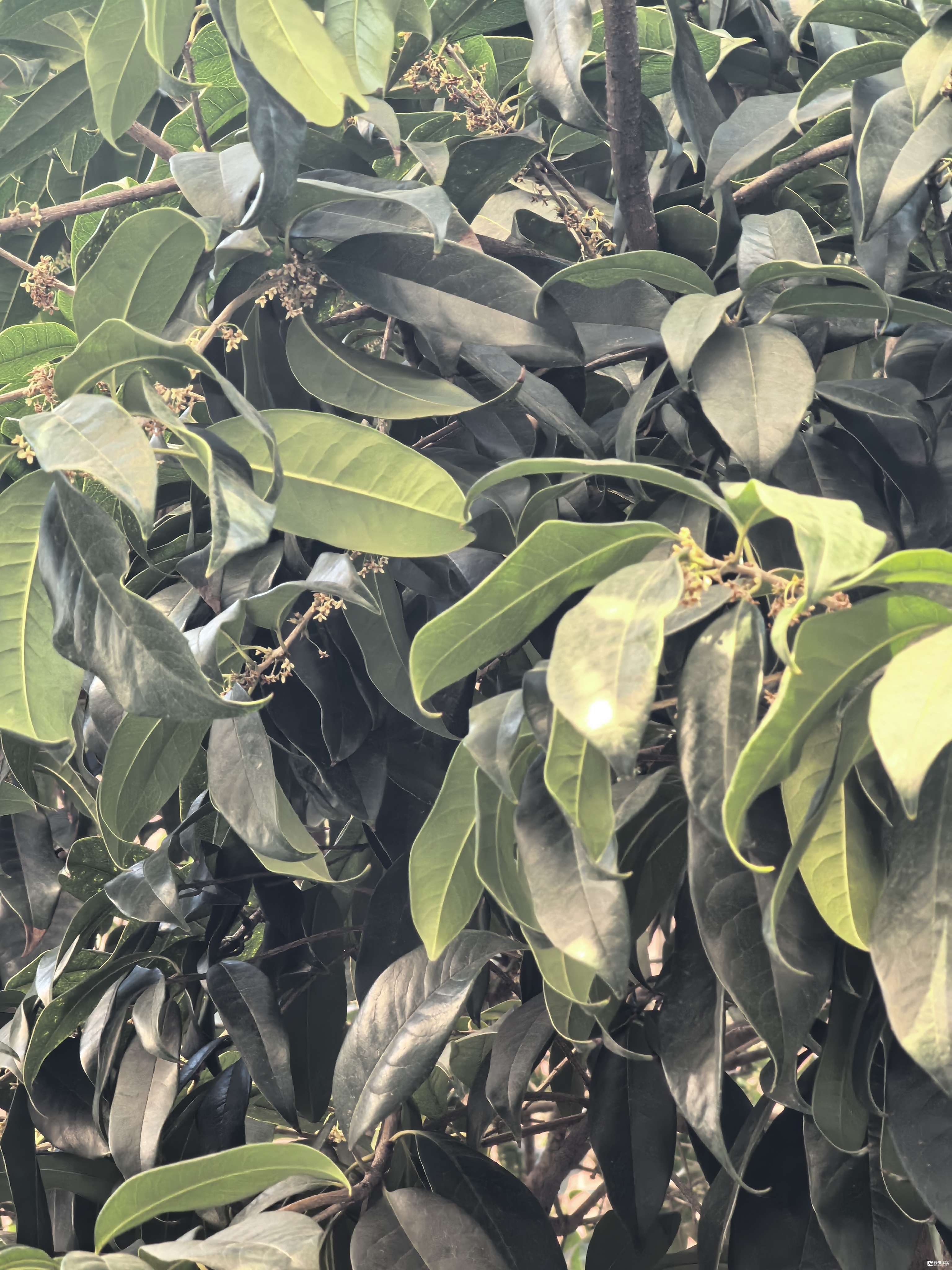 转了转小区内这么多株桂花树,只见这棵尚存未落尽香气散尽的残花。看这树比其他的树高大荗盛,叶片也宽大些,据说是山里挖载没有嫁接过的野生桂花树。开花时间迟些,比人工嫁接过的花香。