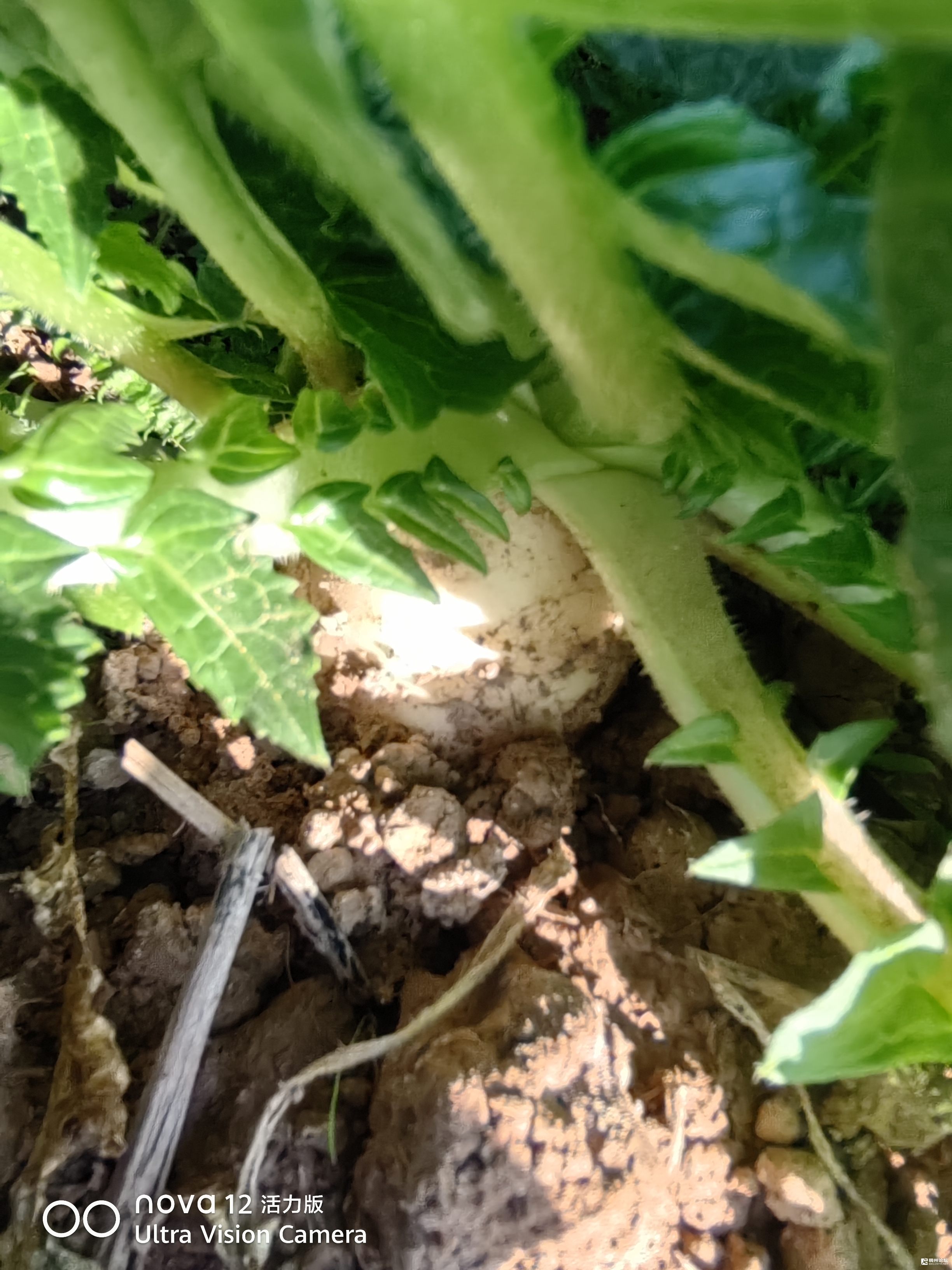 这个种子也太贵了,一包才四五十颗,到现菜还粘在泥里不上长,昨天趴开一看,哇塞!上长的那株菜下面的萝卜还真有点大,还很光滑