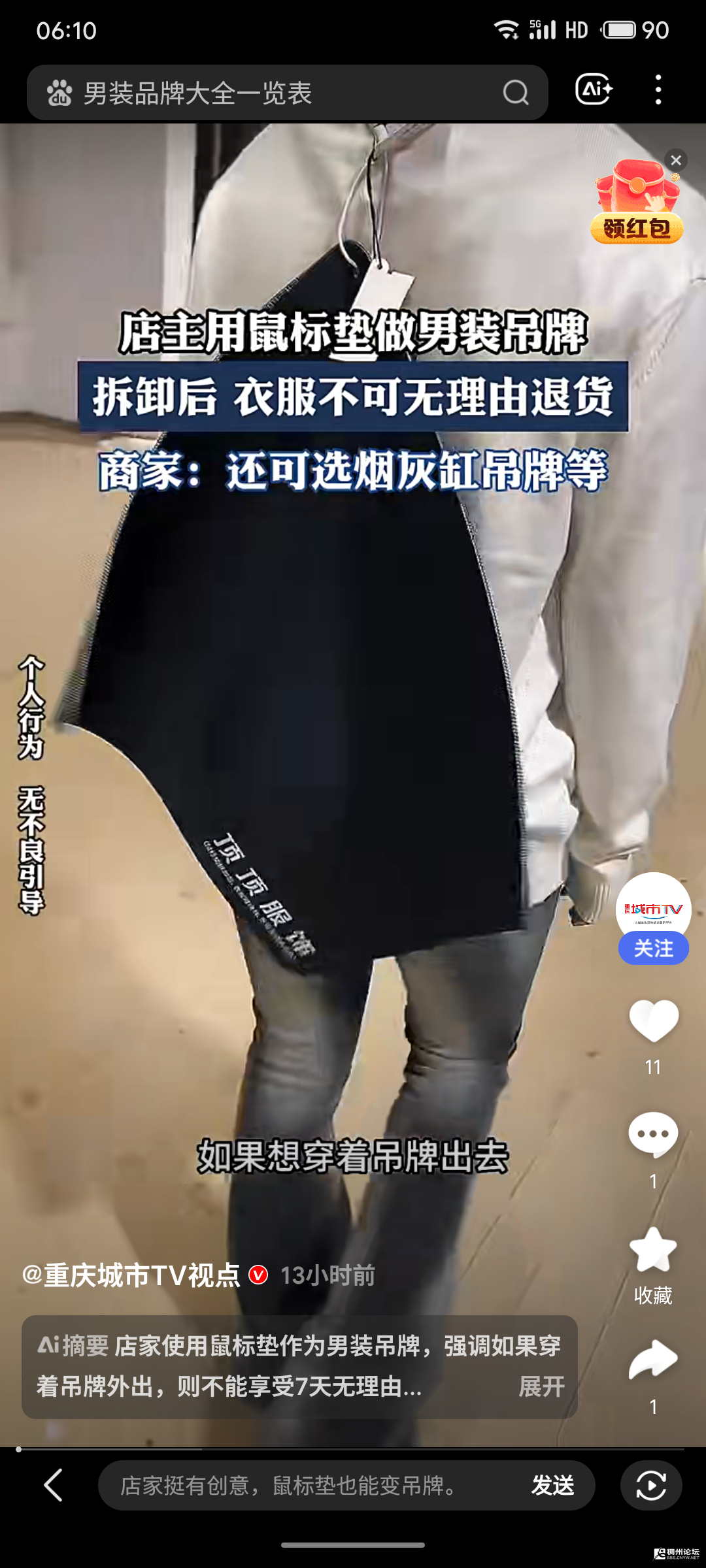 据潇湘晨报报道,近日,江苏一男装网店店主制作“鼠标垫吊牌”,没想到意外爆火。