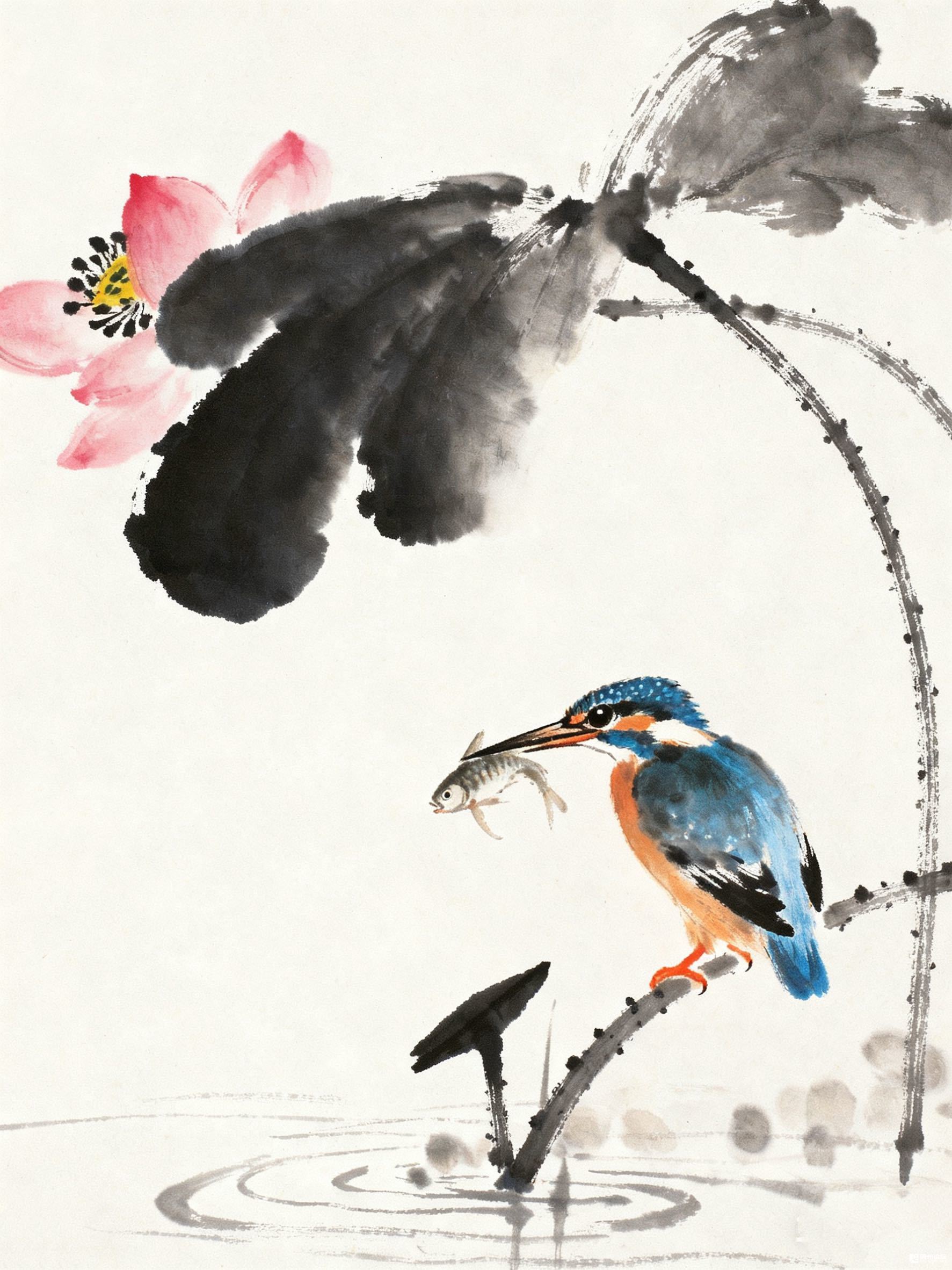 留白处没写的,是荷下的水声、风掠过叶边的轻响,还有翠鸟扑翅时抖落的水珠——这哪里是画,分明是刚从荷塘里捞出来的一帧夏:荷正艳,鸟正欢,连小鱼的鳞光都还带着水的凉。